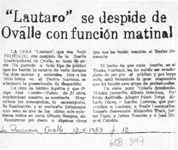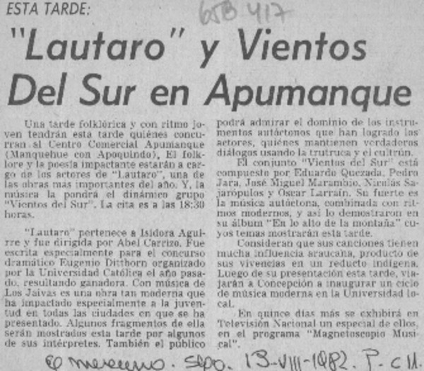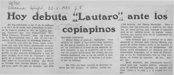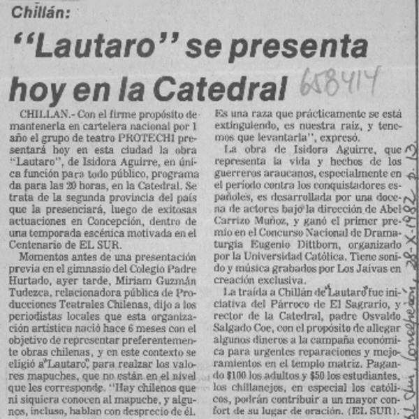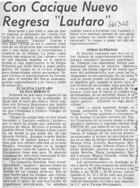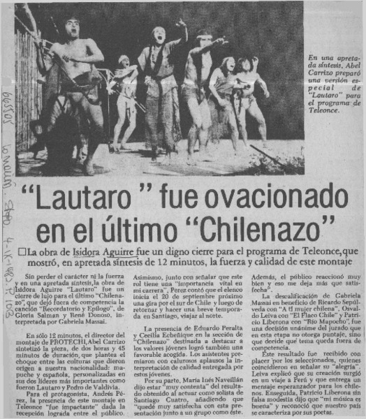 Al estilo "Jesucristo Superestrella" llegó obra sobre el mapuche Lautaro. [artículo]