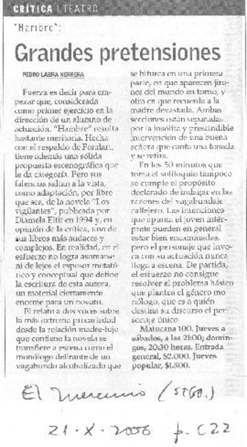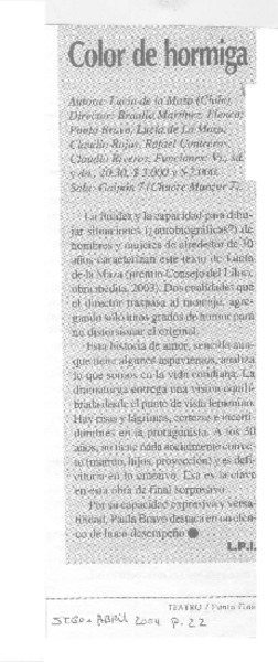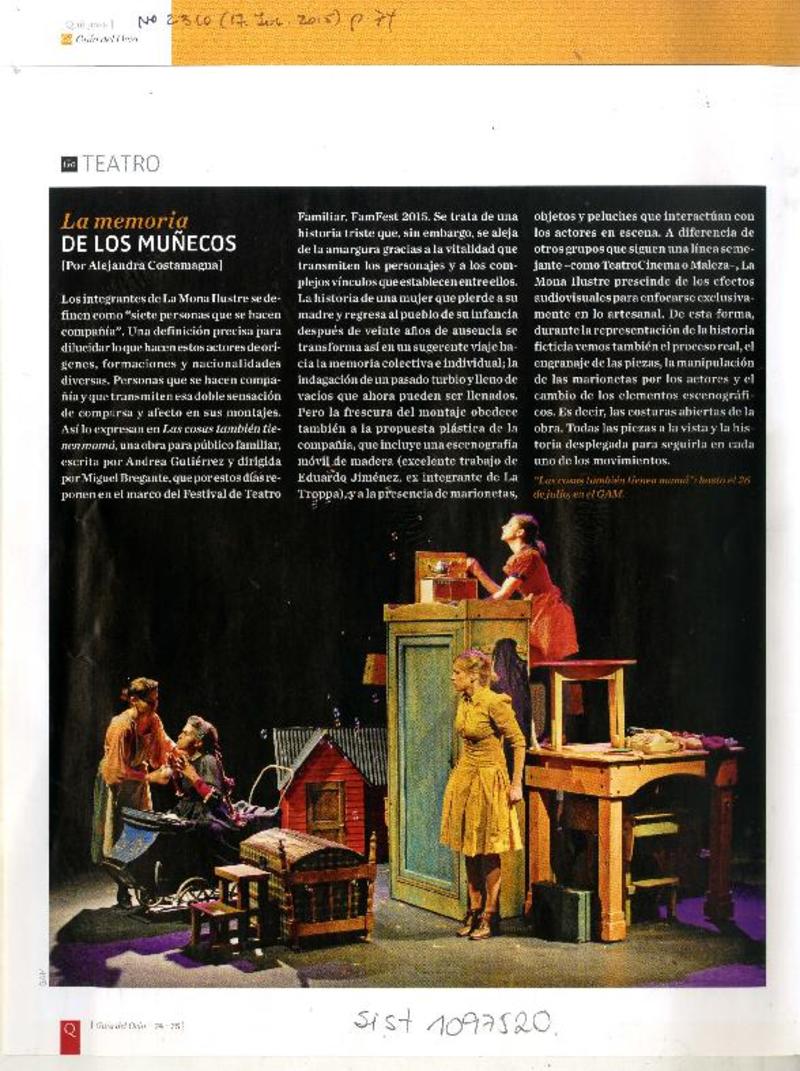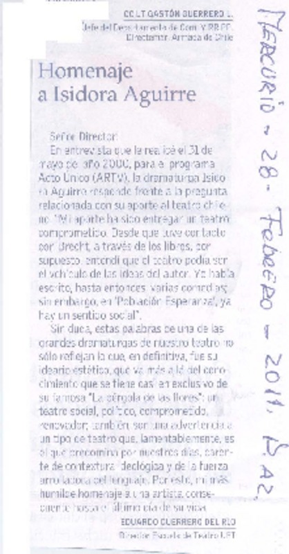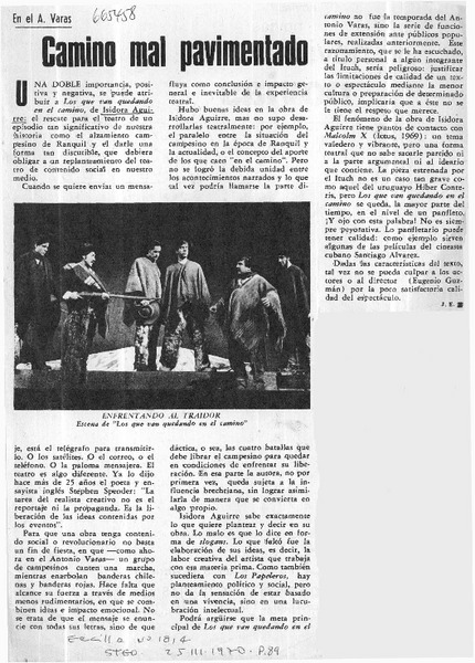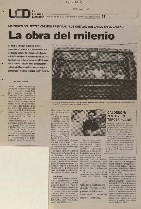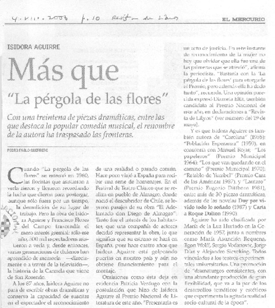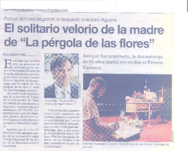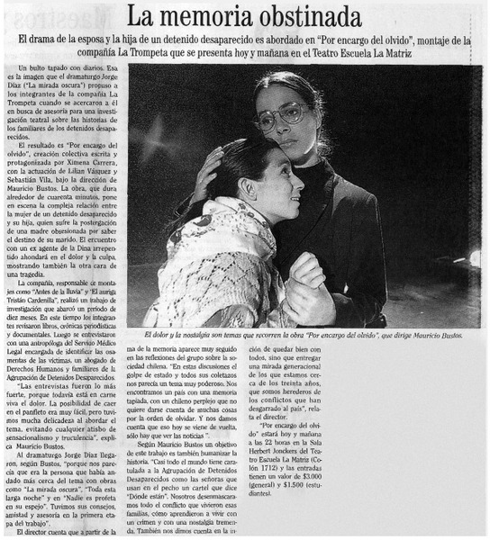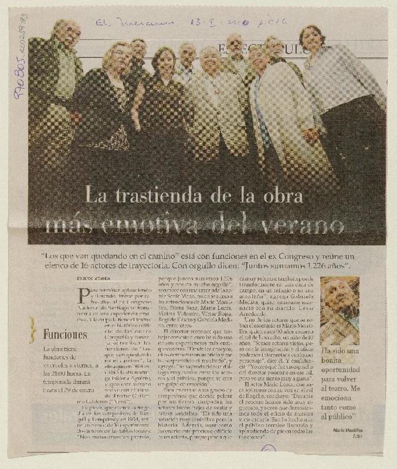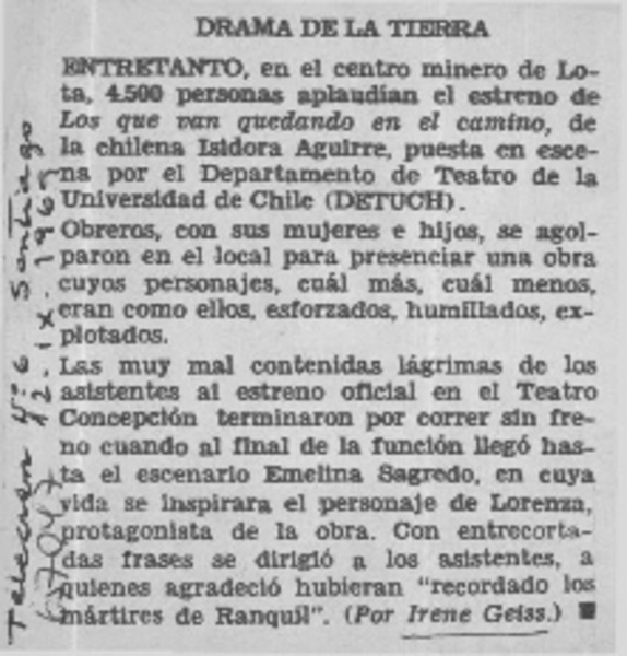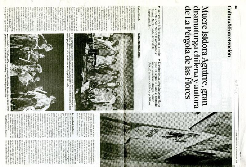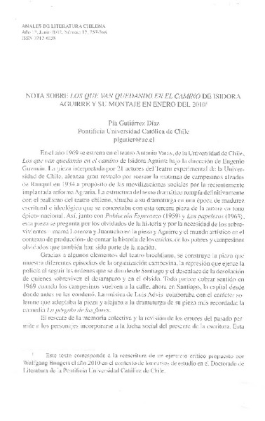 Nota sobre Los que van quedando en el camino de Isidora Aguirre y su montaje en enero del 2010 [artículo] Pía Gutiérrez Díaz.