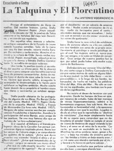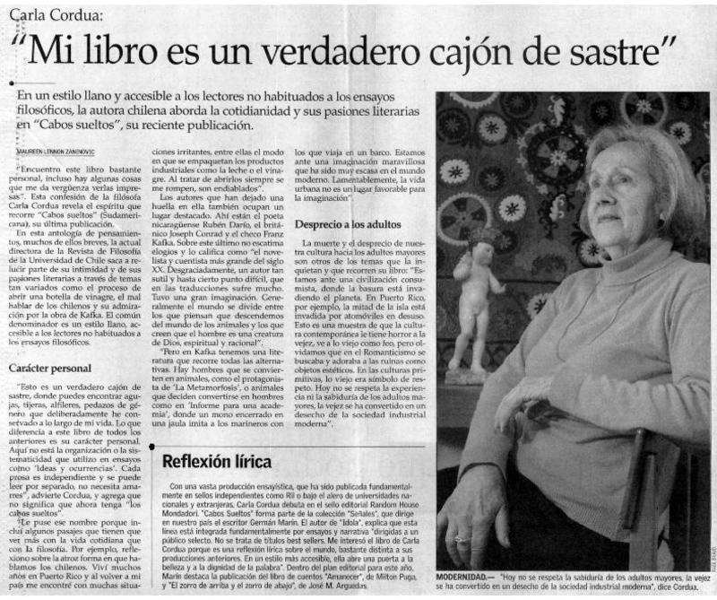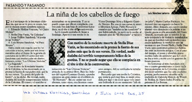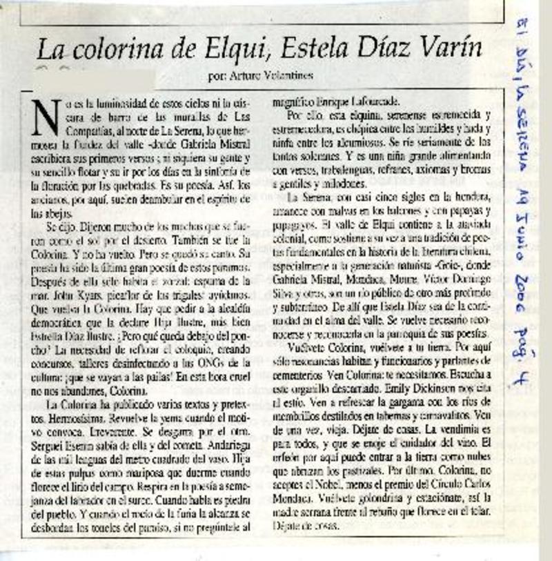 Adiós a Stella Díaz Varín. [artículo] Aristóteles España.