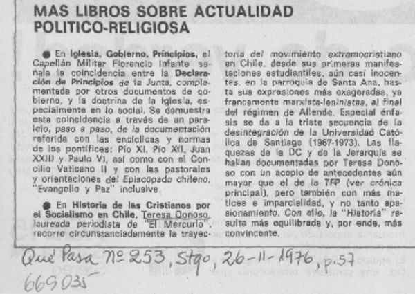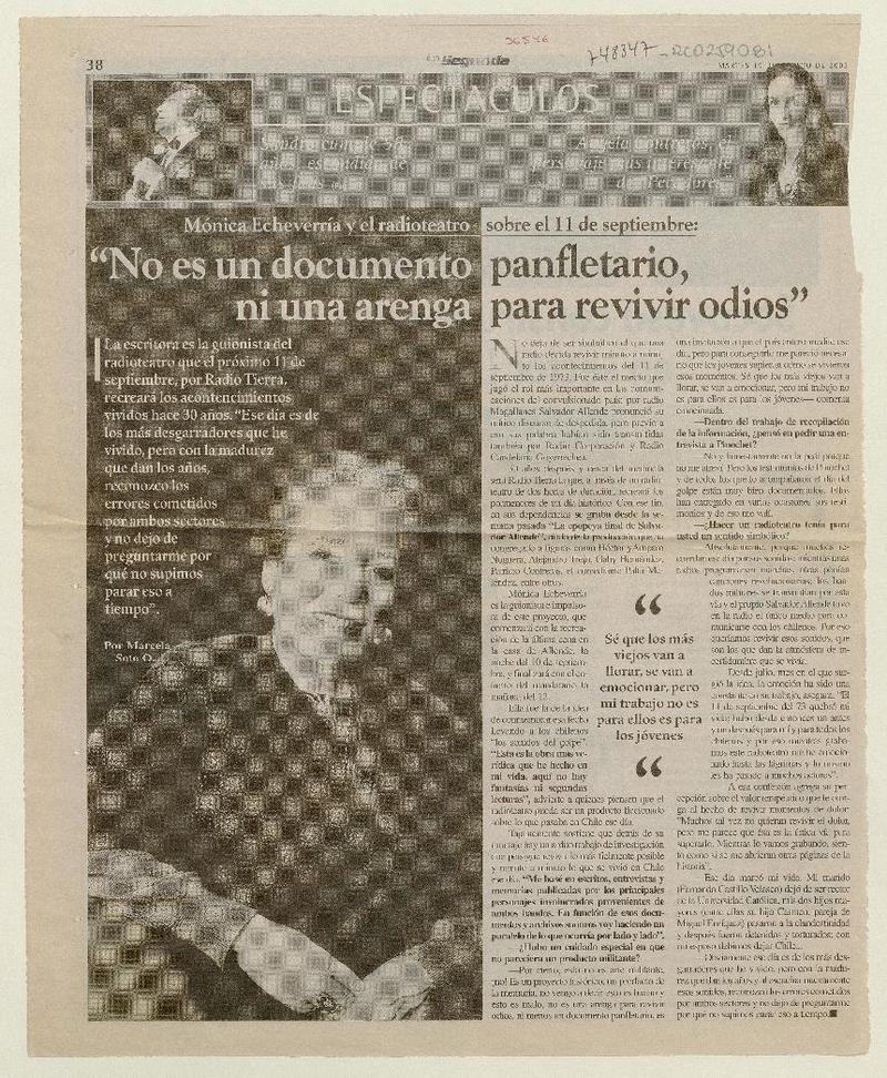 No es un documento panfletario, ni una arenga para vivir odios" : [entrevistas] [artículo]