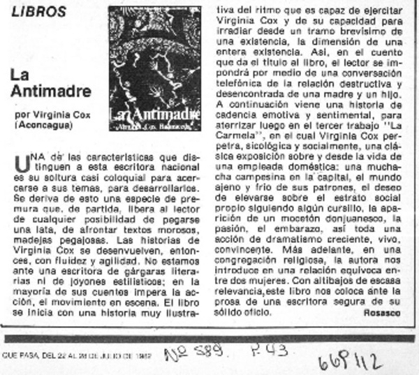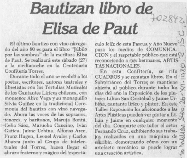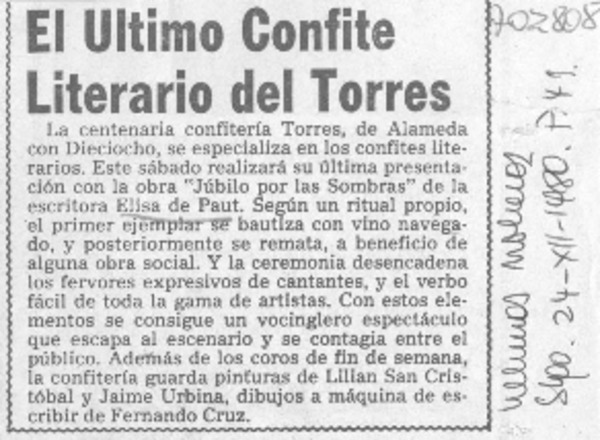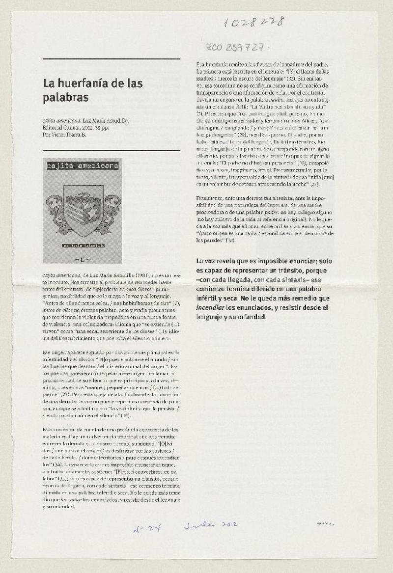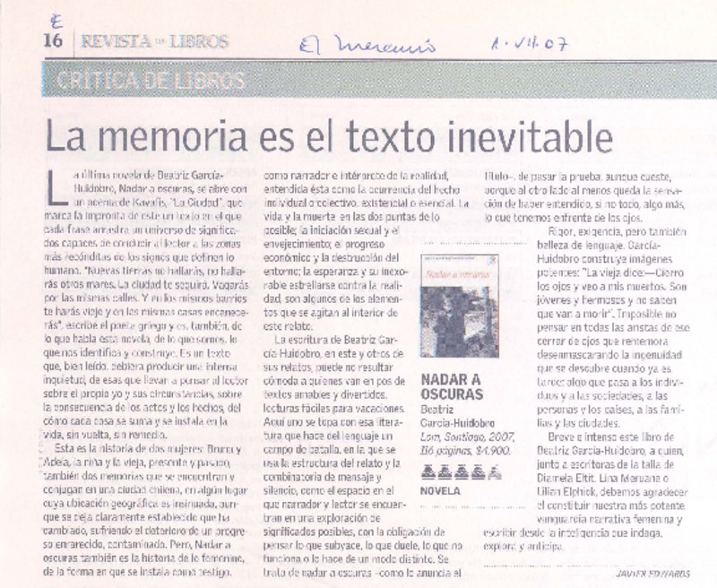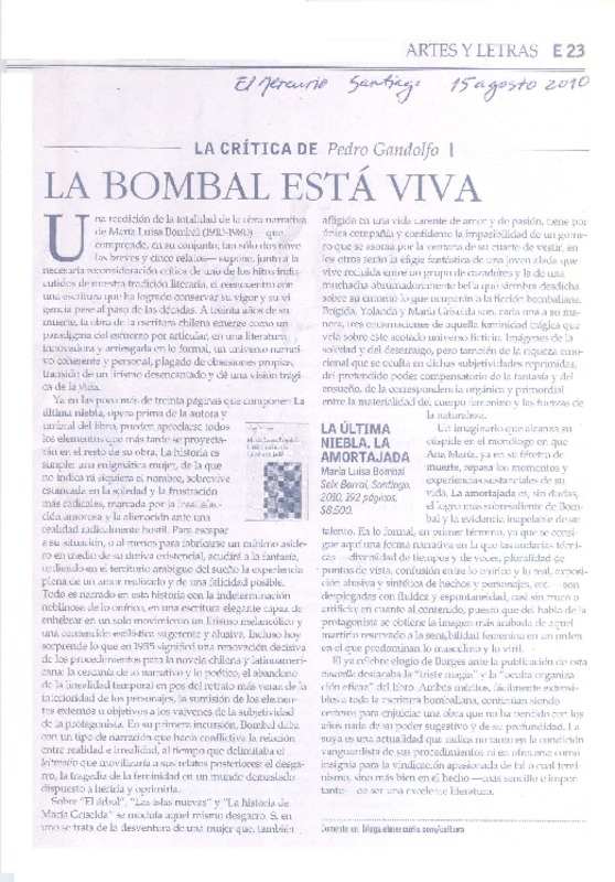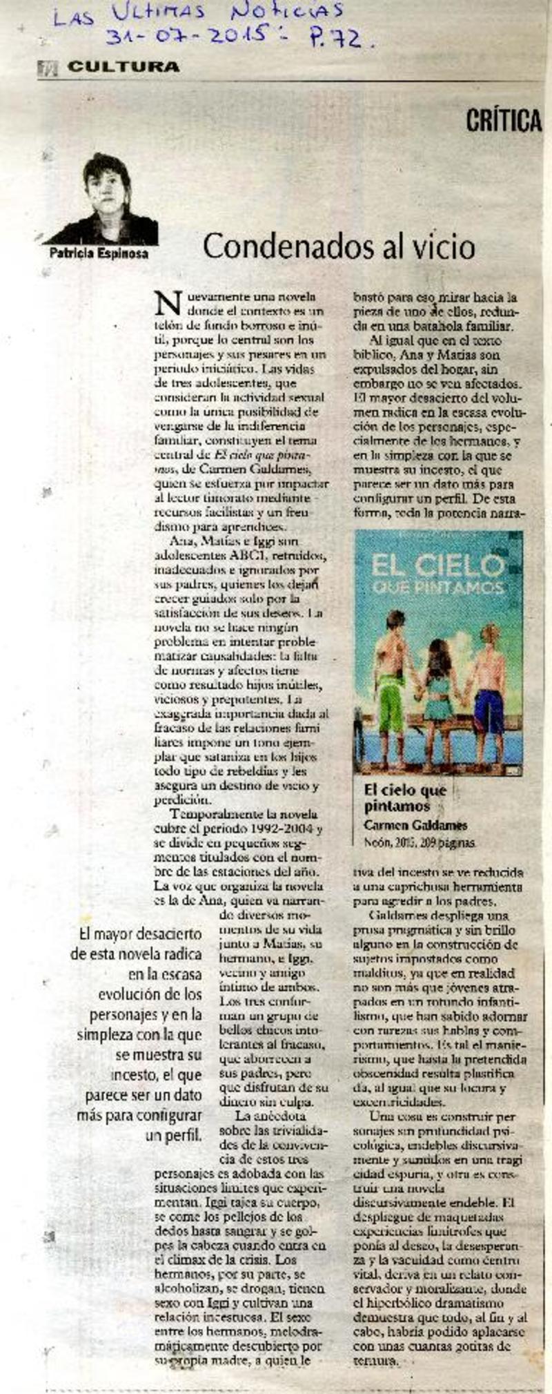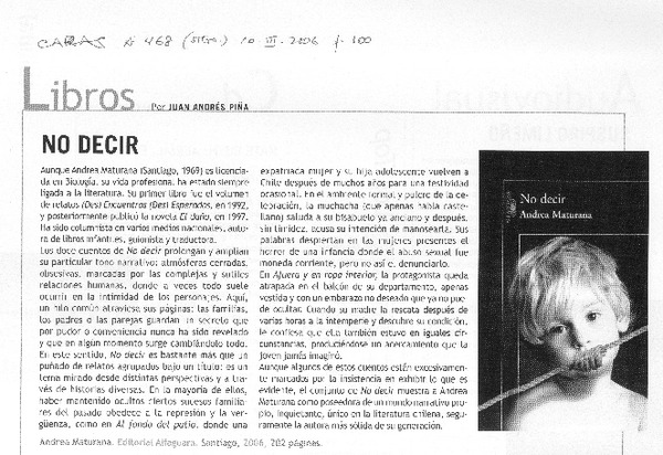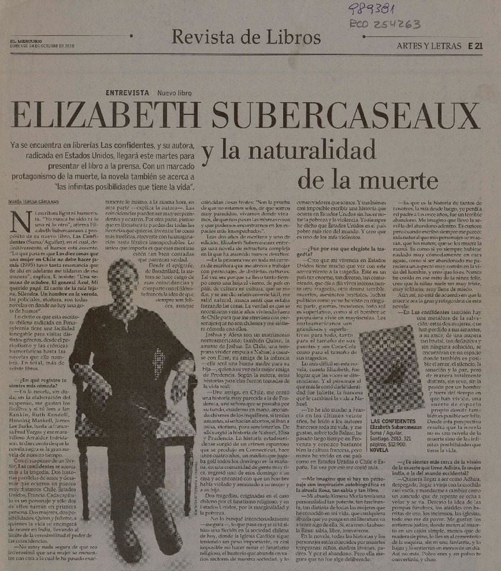 Novelista revela los crìmenes y pecados de una familia de clase alta [artículo] Francisca Babul Guixè.