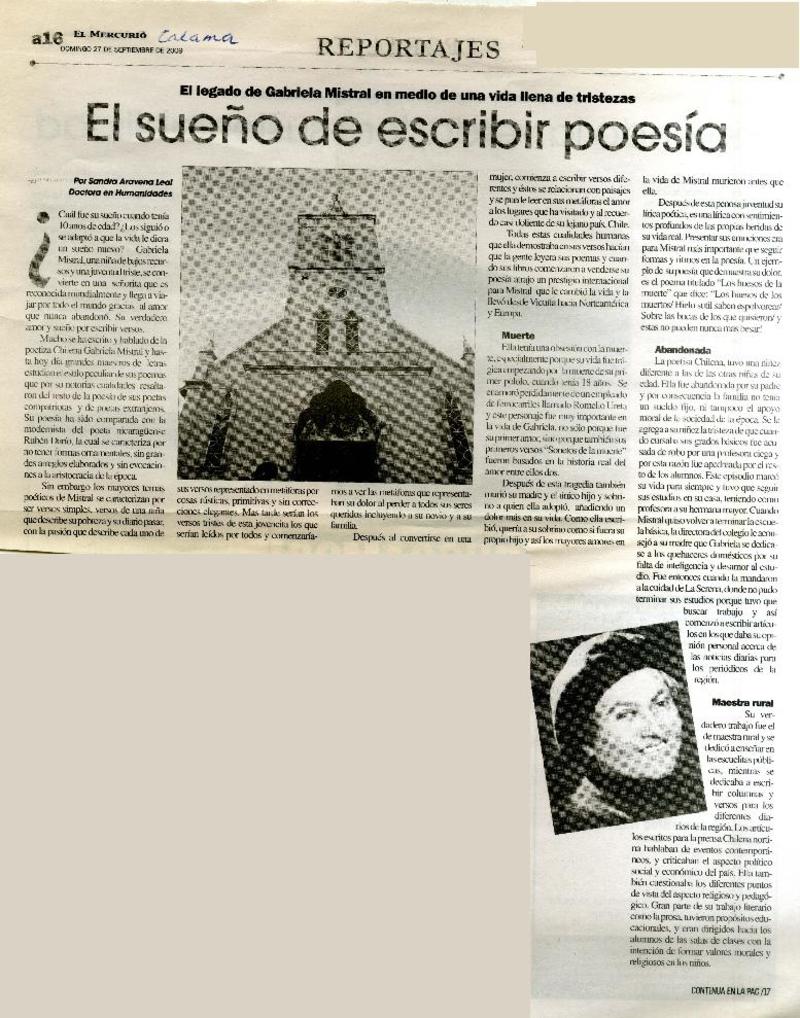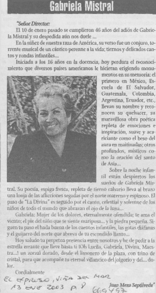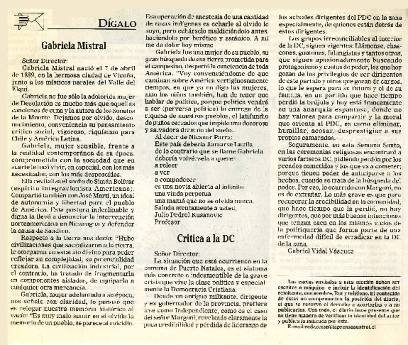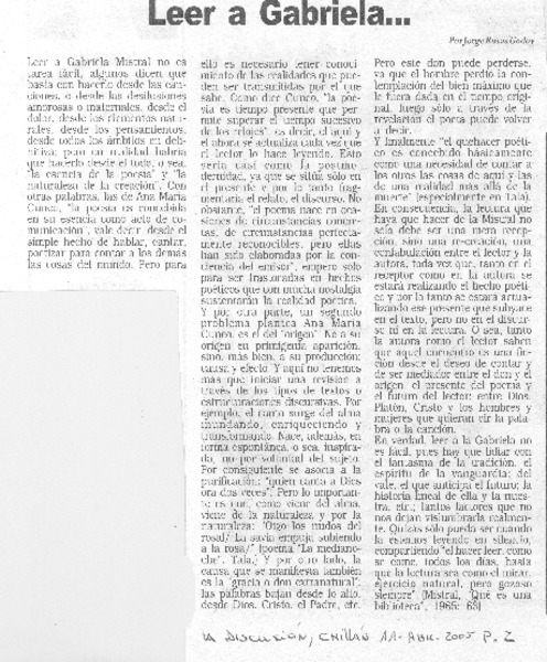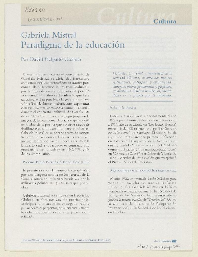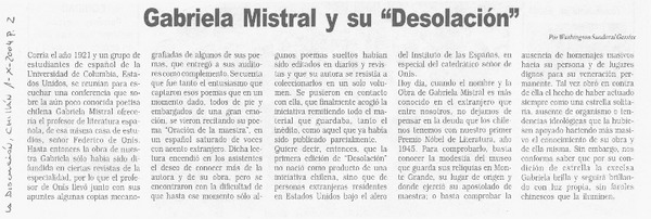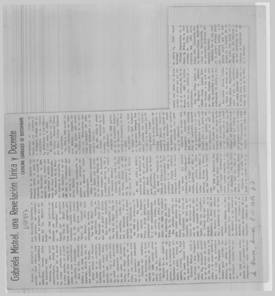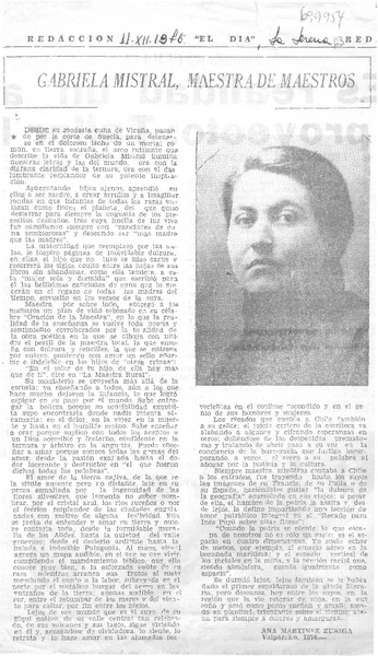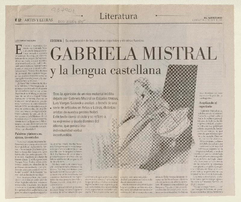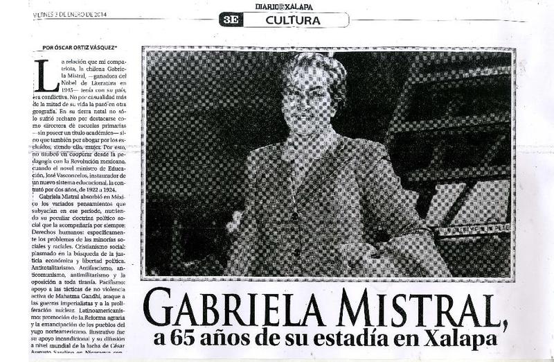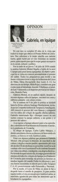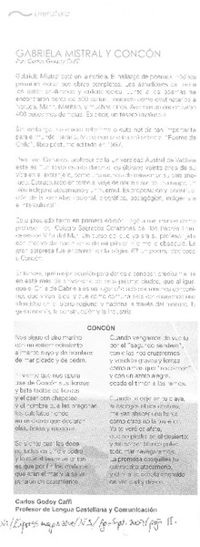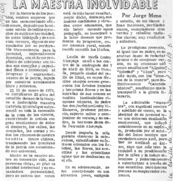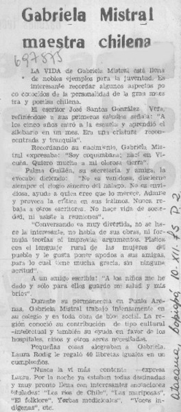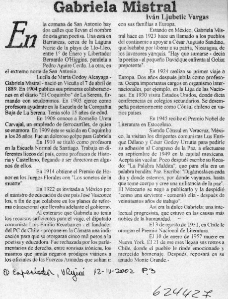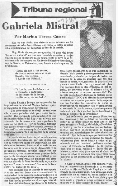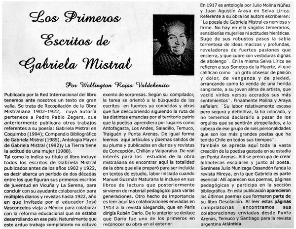 A 93 años del natalicio de Gabriela Mistral [artículo] Gastón Sandoval Salazar.