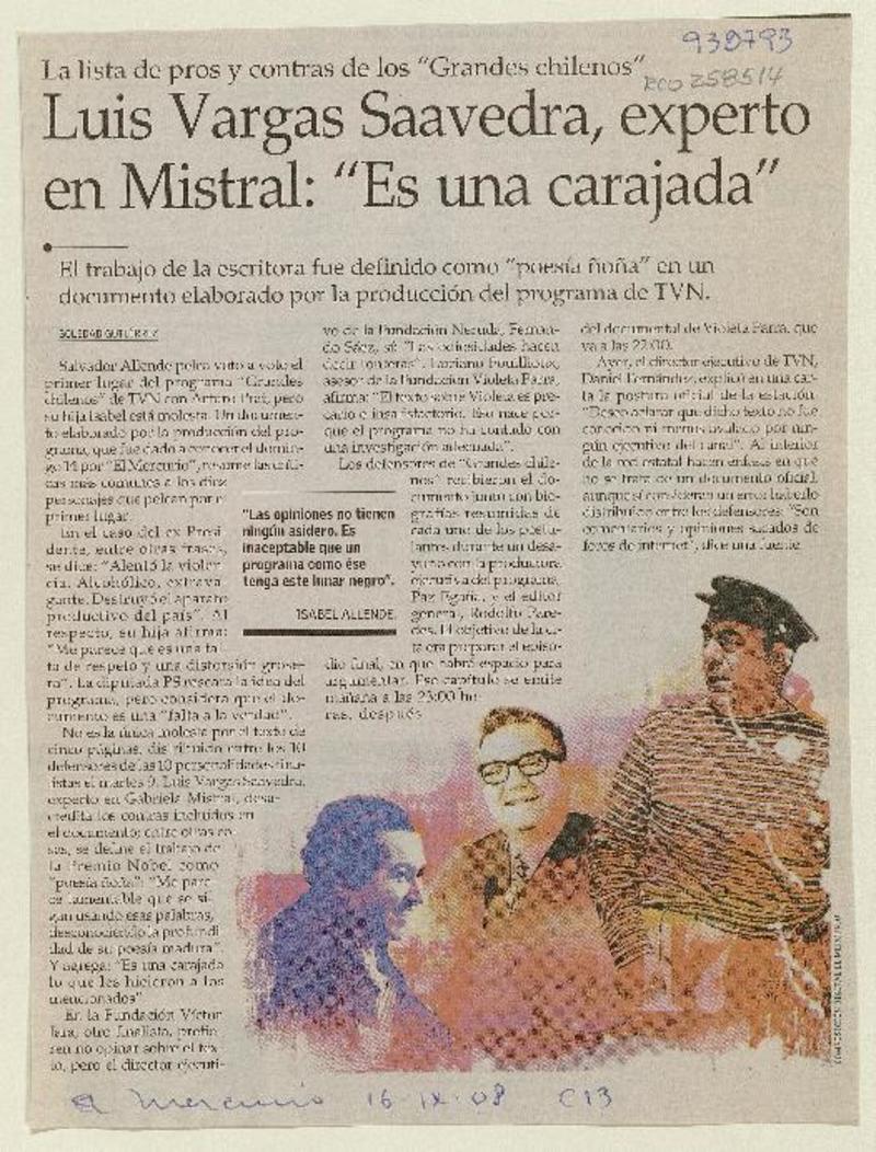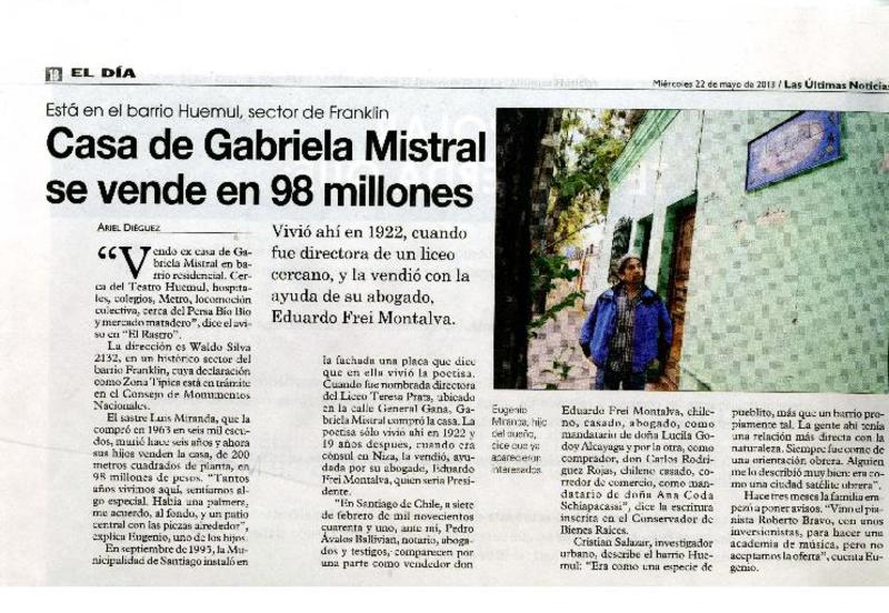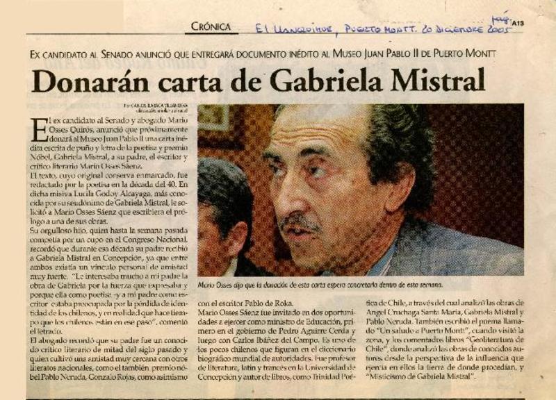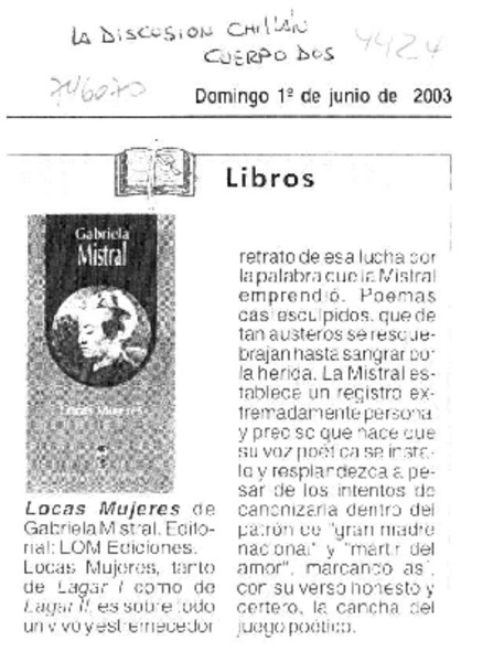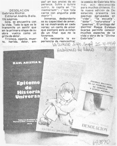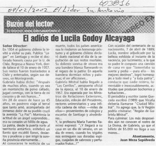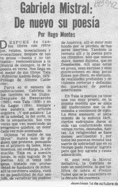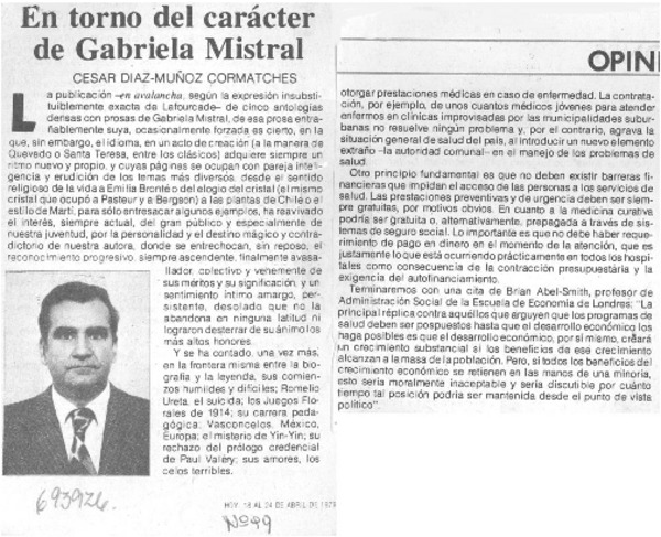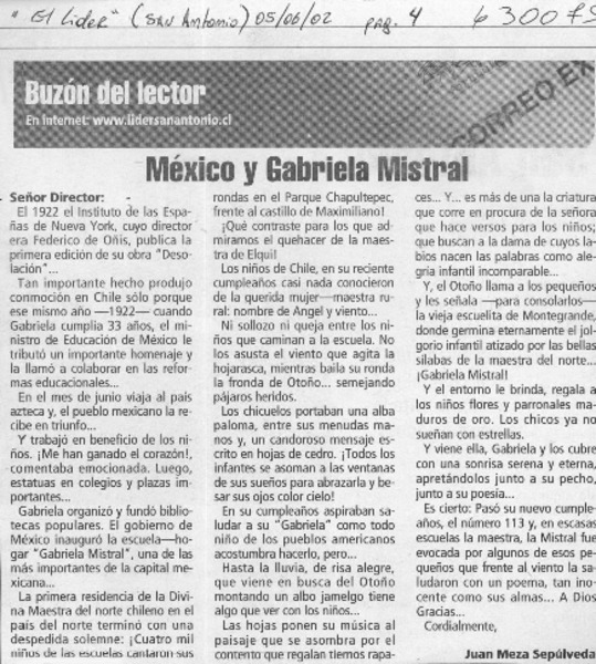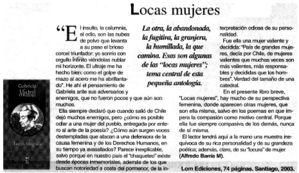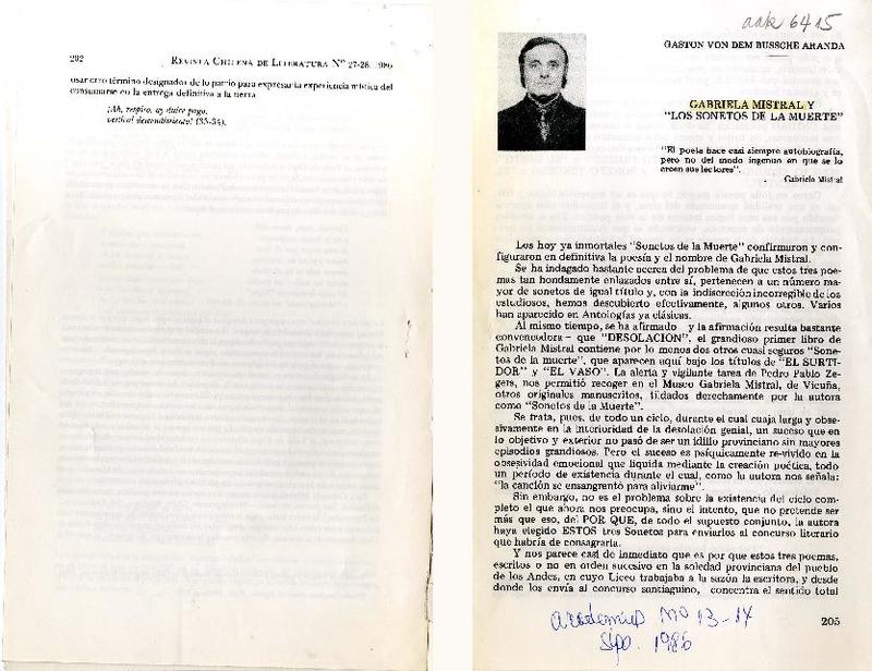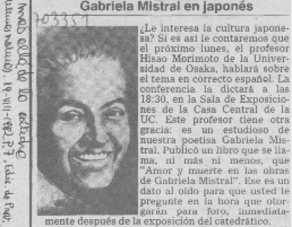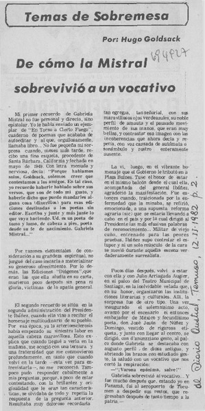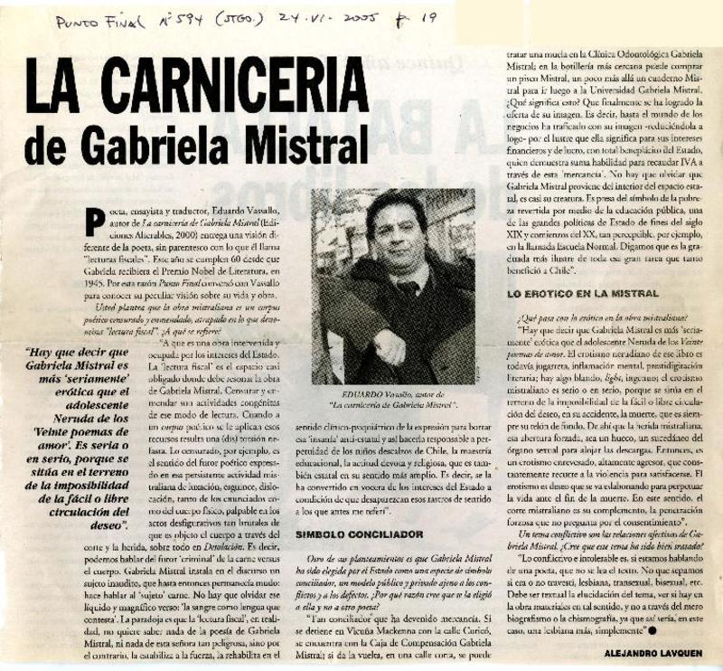 A 93 años del natalicio de Gabriela Mistral [artículo] Gastón Sandoval Salazar.