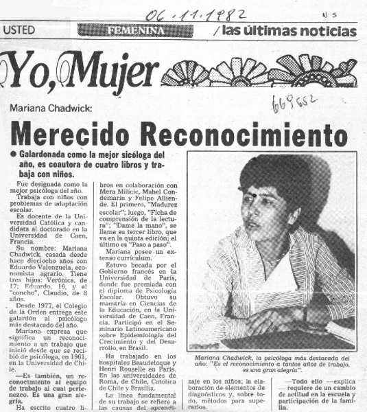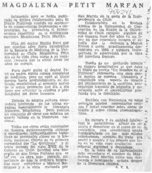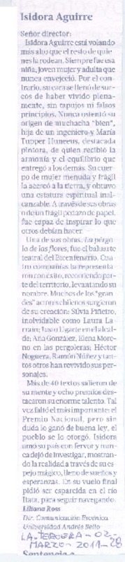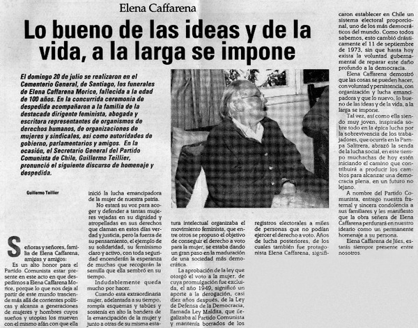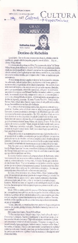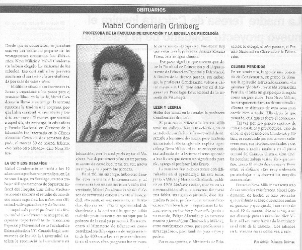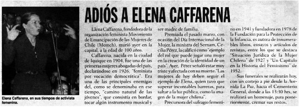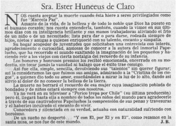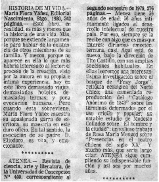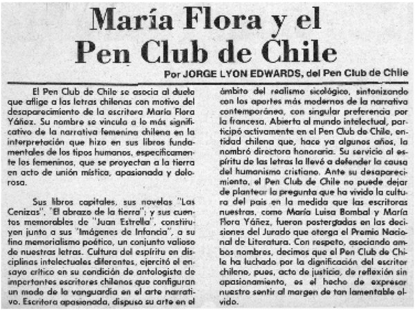 Adiós a María Flora Yañez [artículo] Antonio de Undurraga.