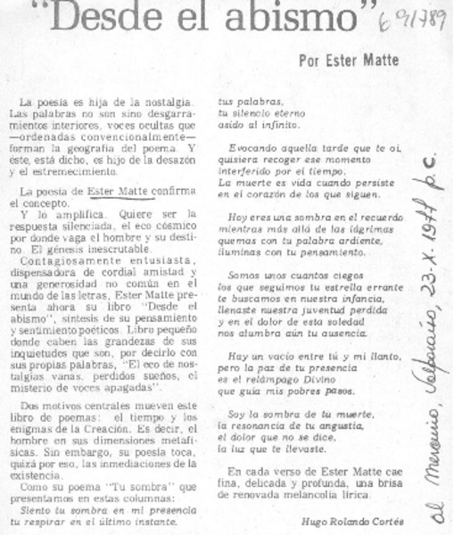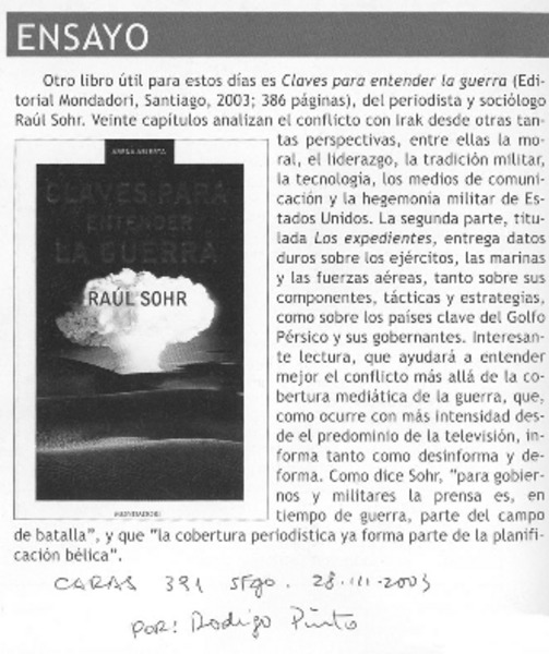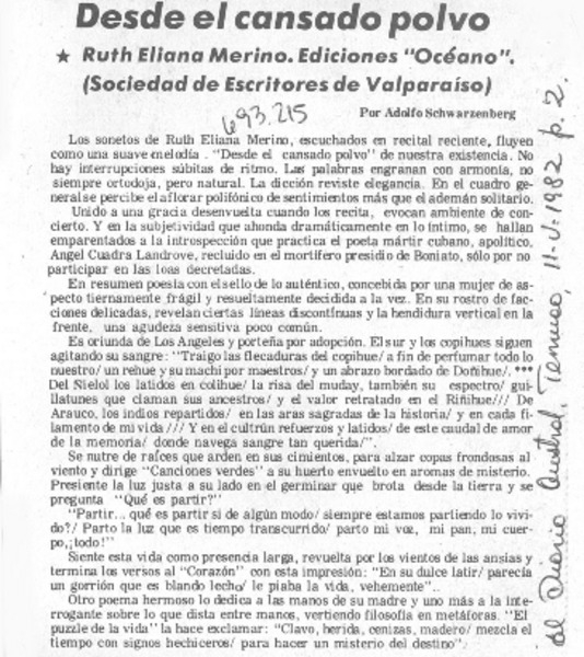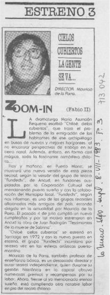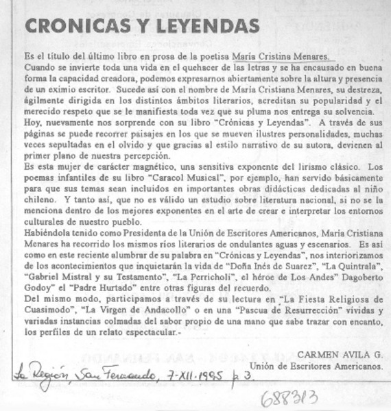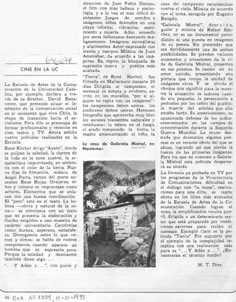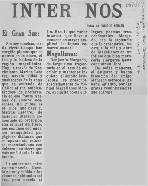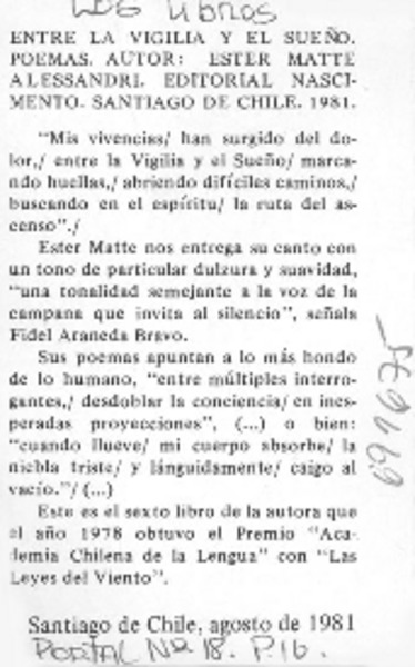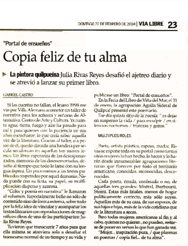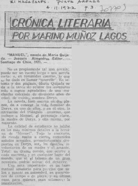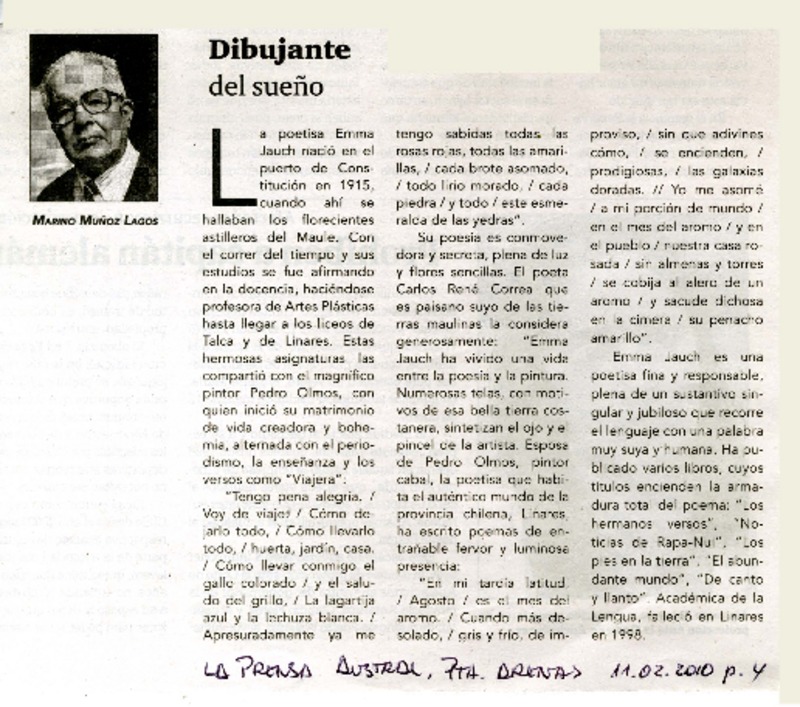 Niebla de ensueños" [artículo] Marino Muñoz Lagos.