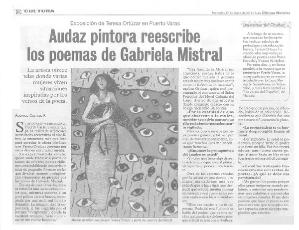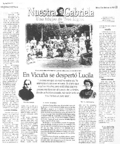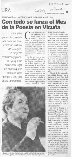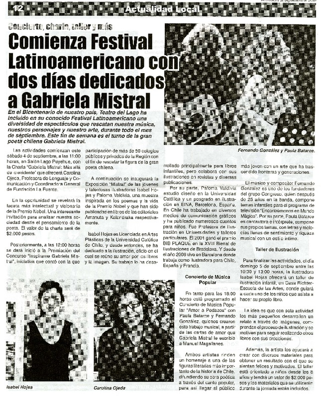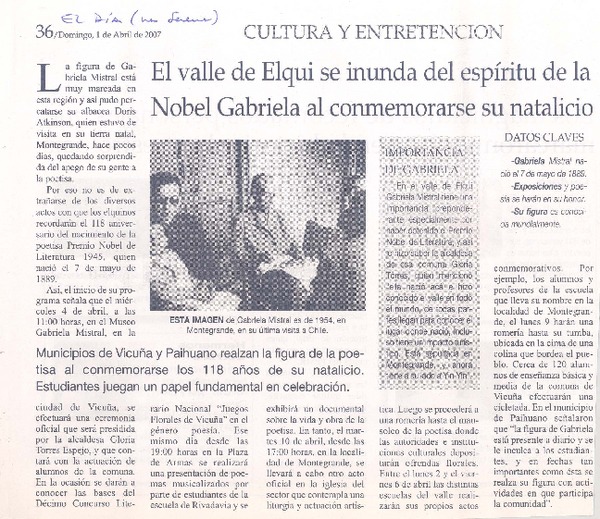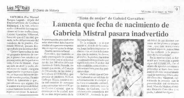 Natalicio de Gabriela agita la esencia cultural de la zona [artículo] Óscar Rosales Cid.