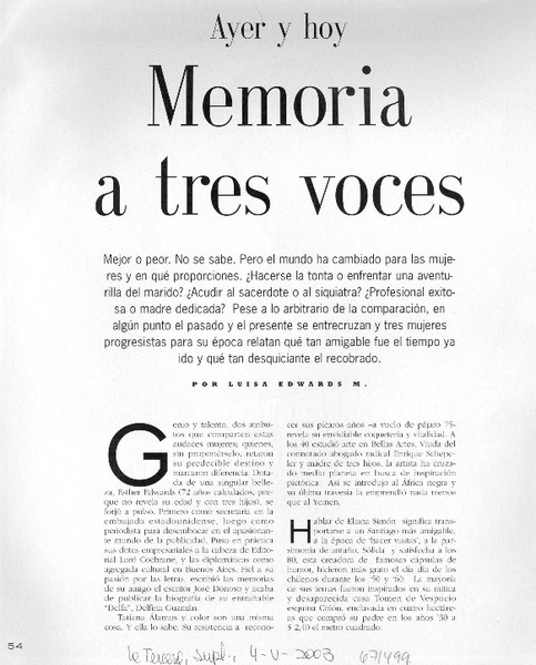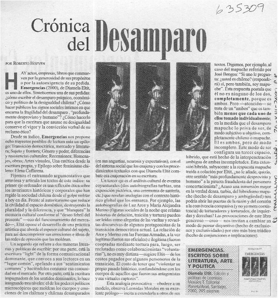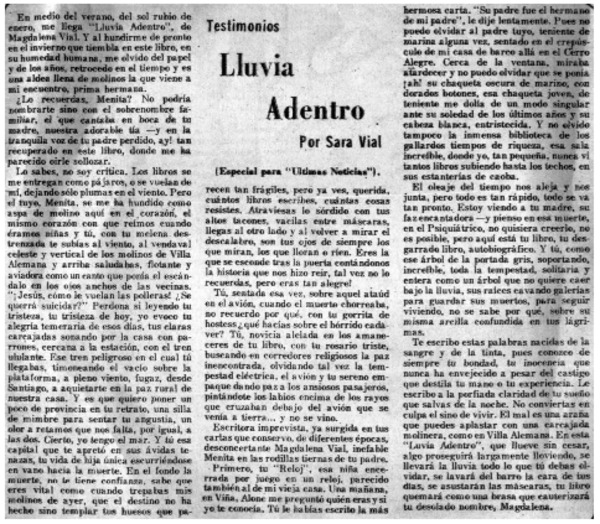 A la intemperie... [artículo] María Ignacia Correa Allende.