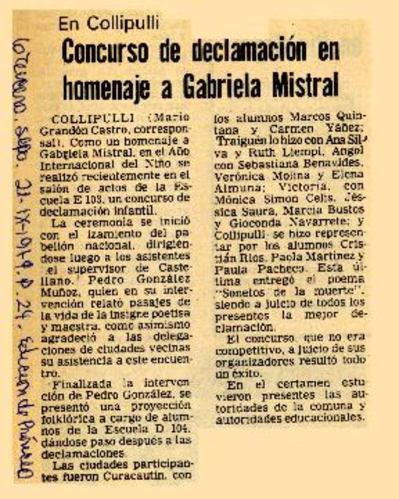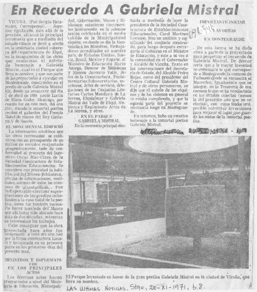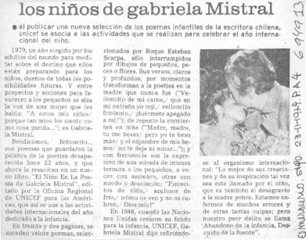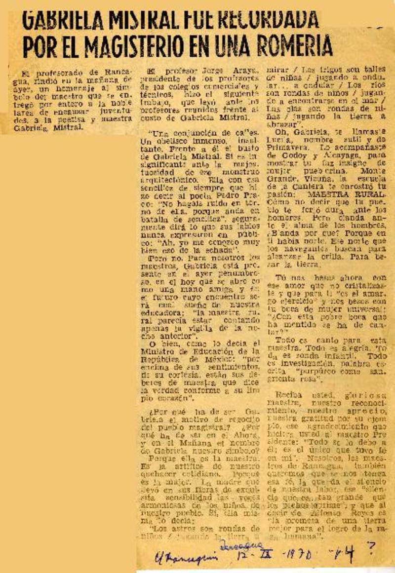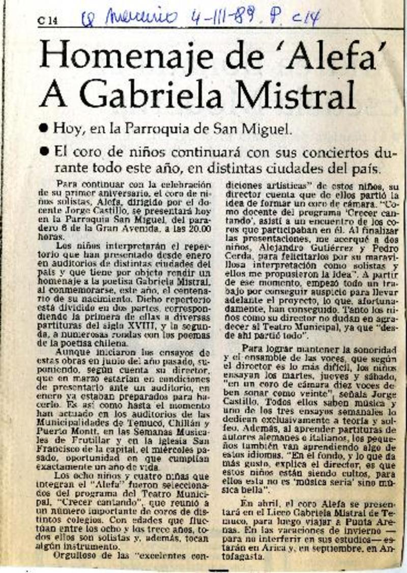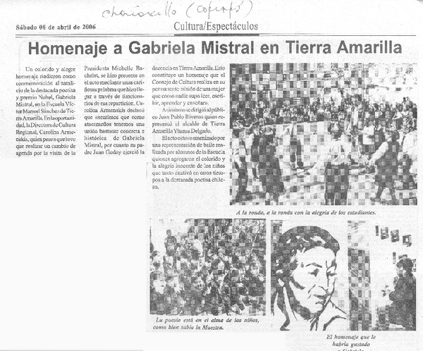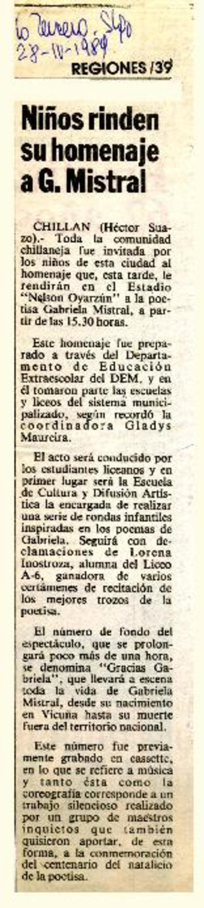 Niños rinden su homenaje a G. Mistral [artículo] Héctor Suazo.