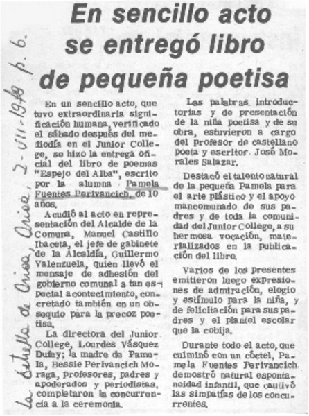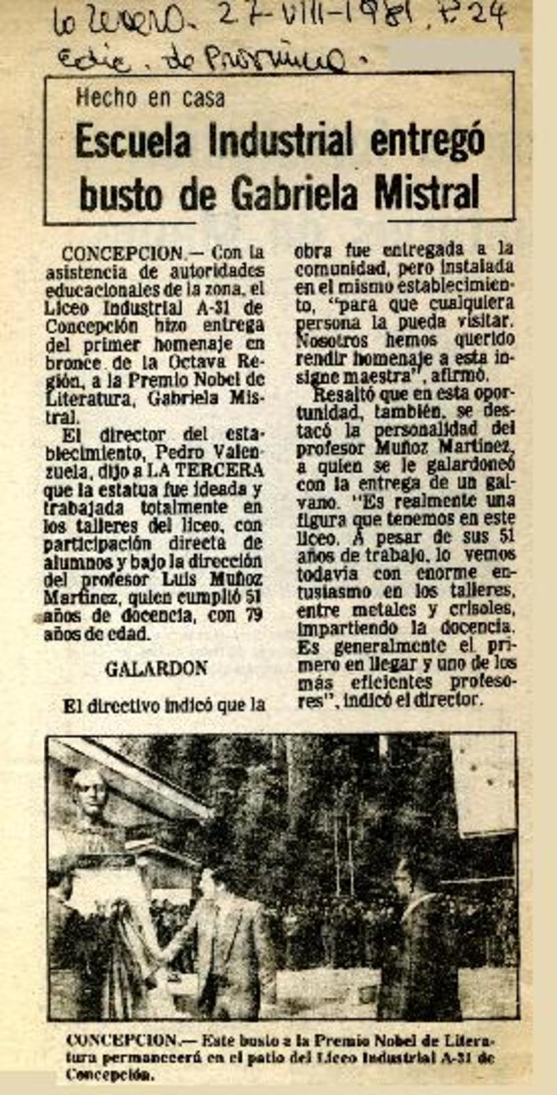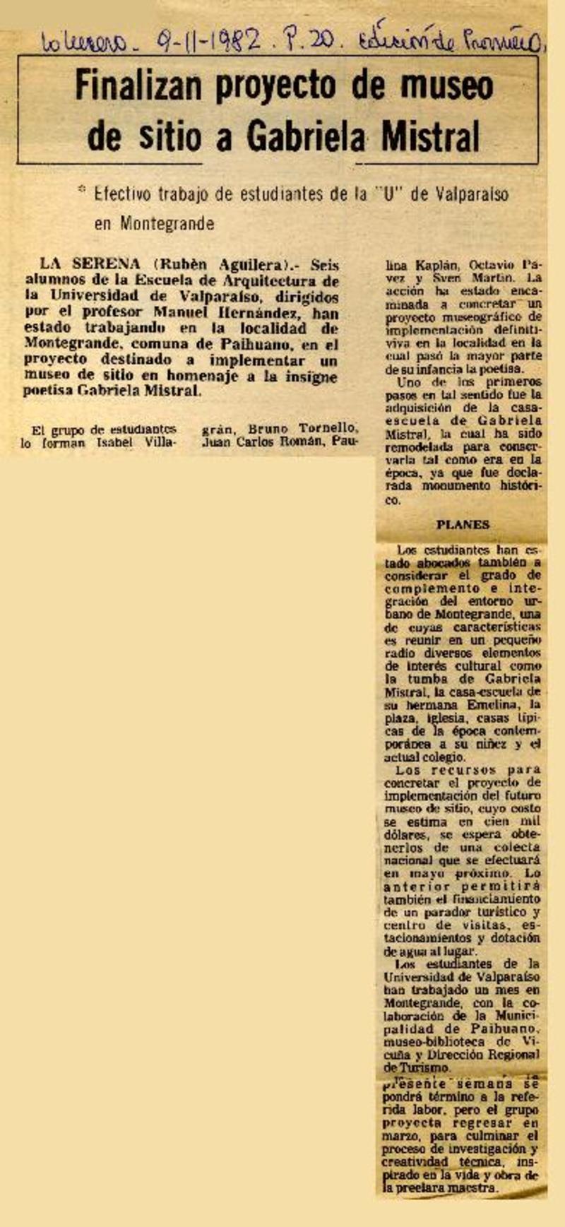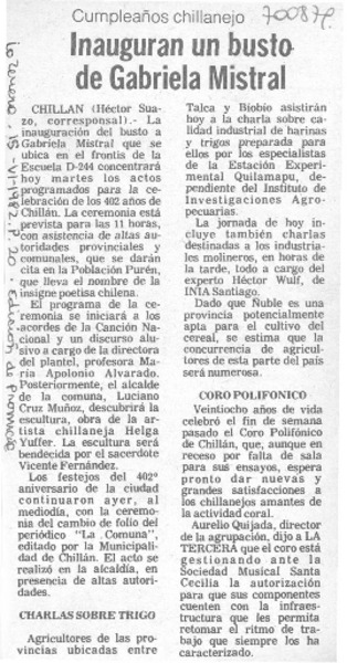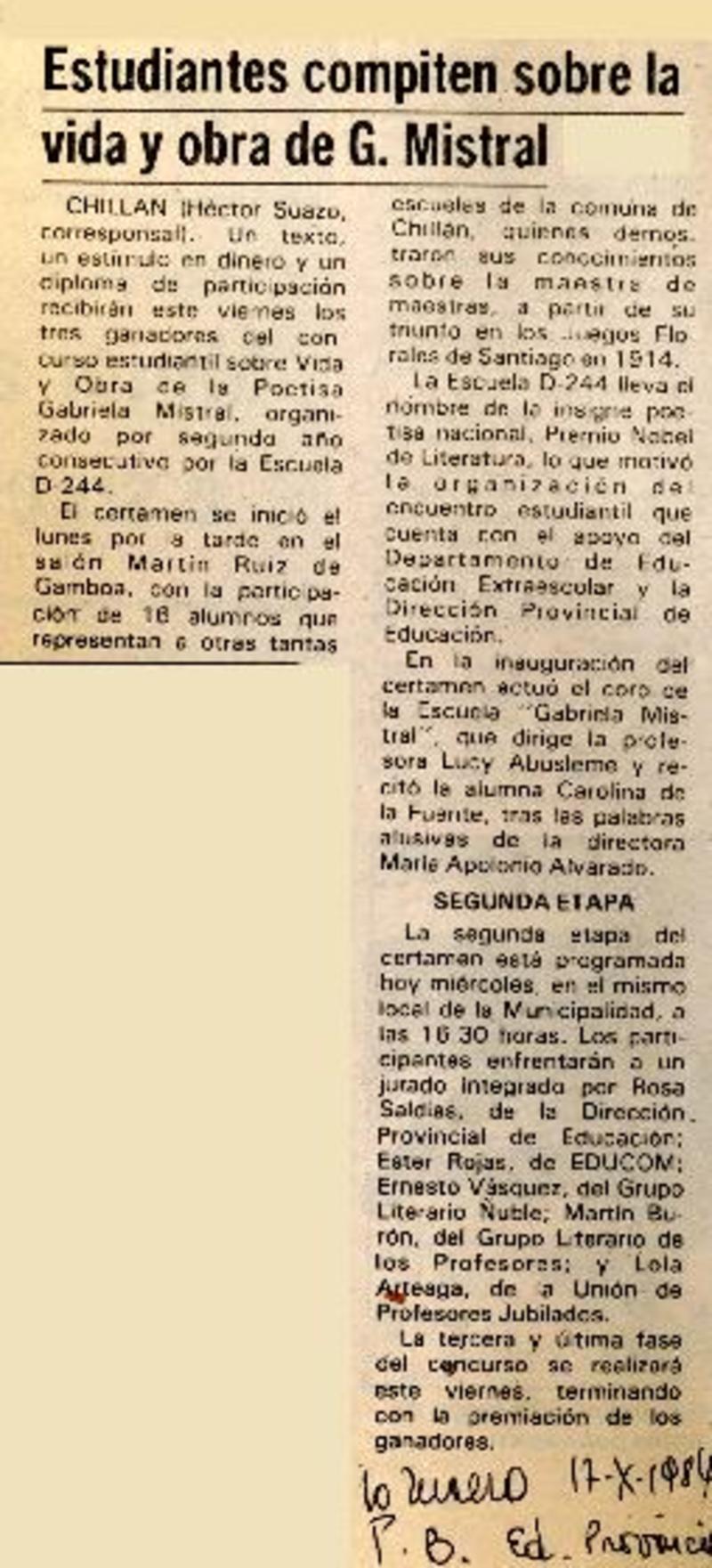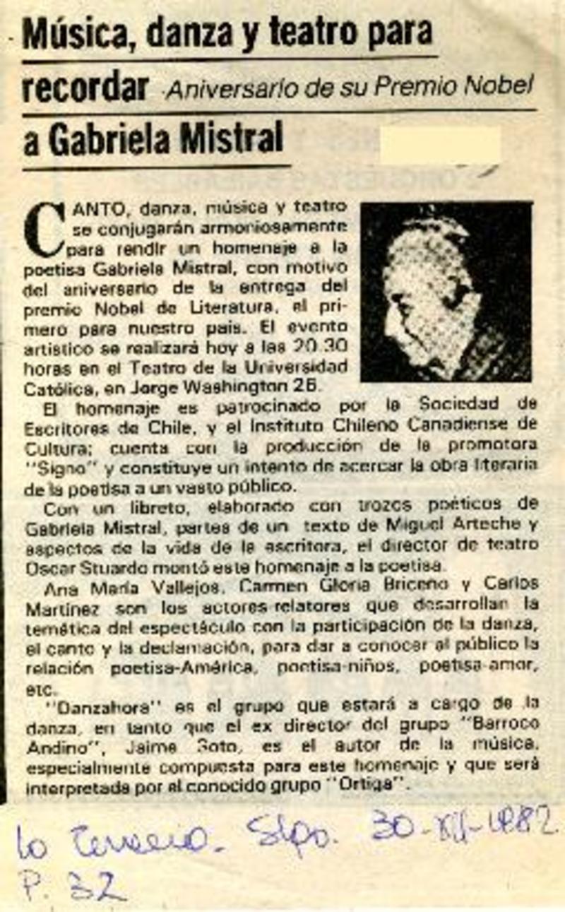 Niños rinden su homenaje a G. Mistral [artículo] Héctor Suazo.