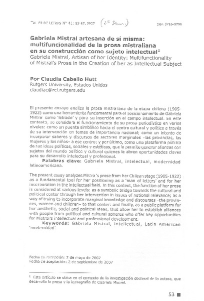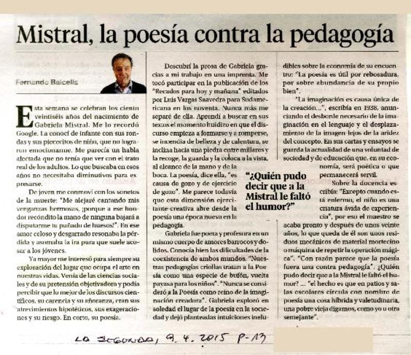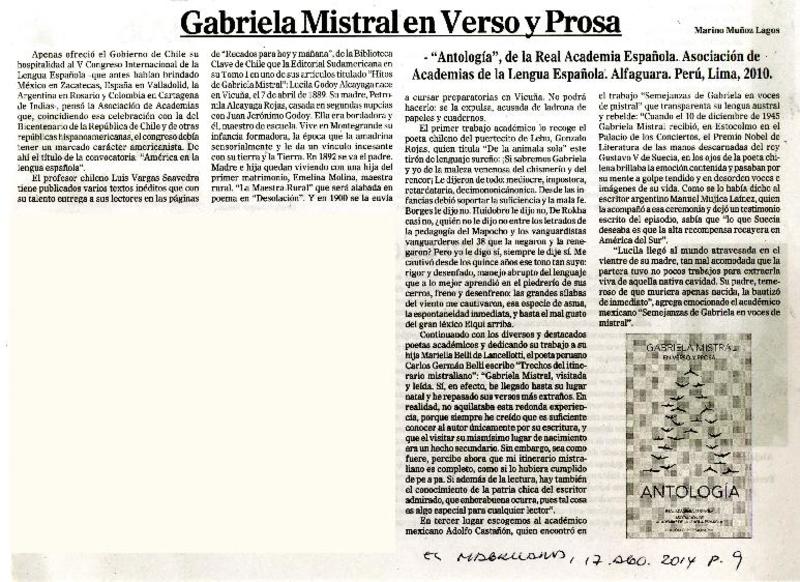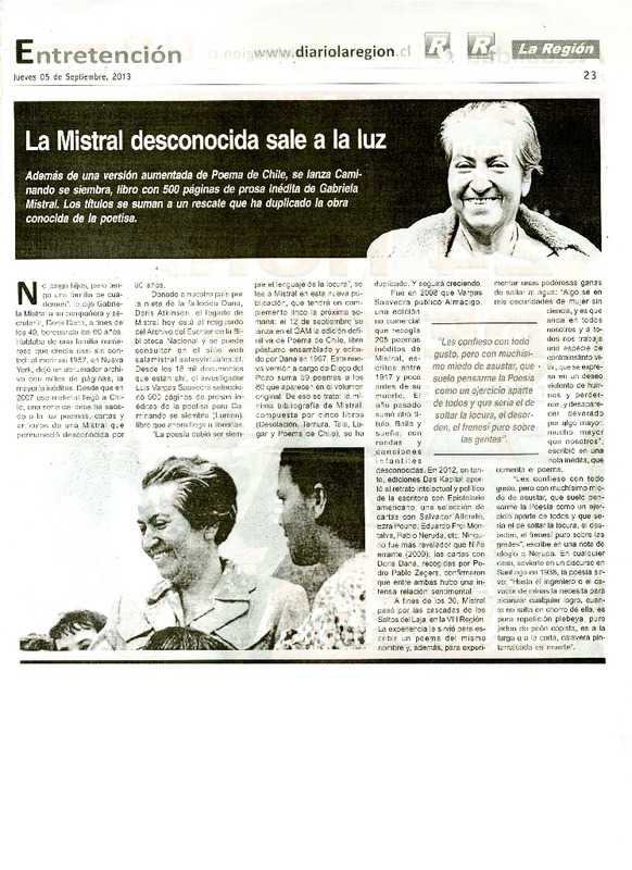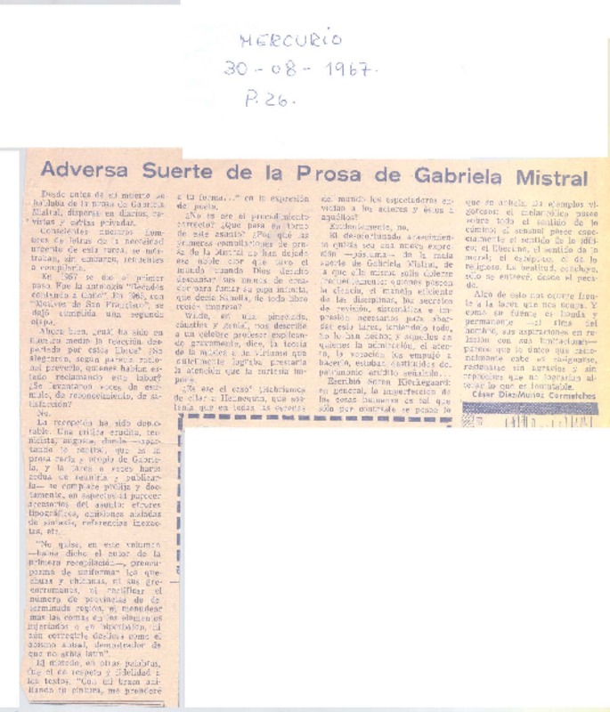 Adversa suerte de la prosa de Gabriela Mistral [artículo] César Díaz-Muñoz Cormatches.