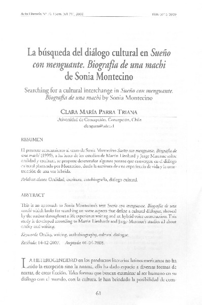 Navegando soledades y lejanías [artículo] Marino Muñoz Lagos.