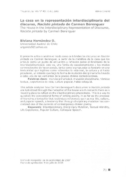 Naciste pintada de Carmen Berenguer o el desplazamientos de los géneros literariossexuales [artículo] / Lorena Garrido Donoso.