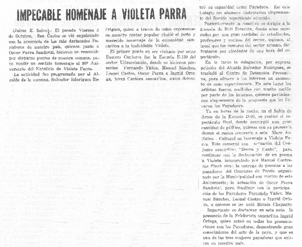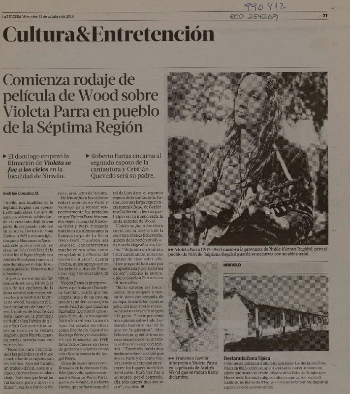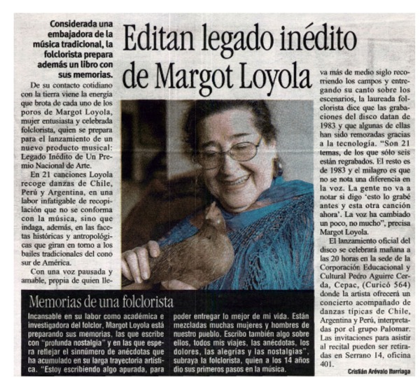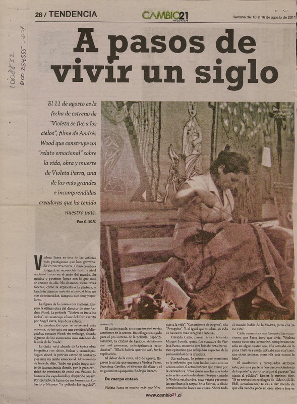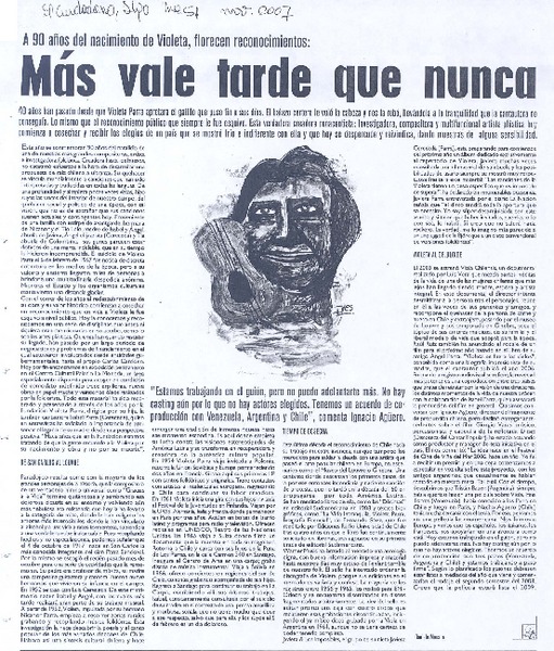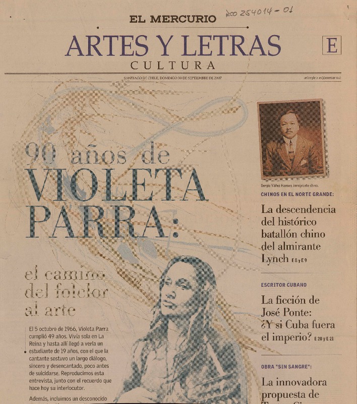 90 años de Violeta Parra : su desconocida entrevista cuatro meses antes de su muerte [artículo] Alfonso Molina Leiva.