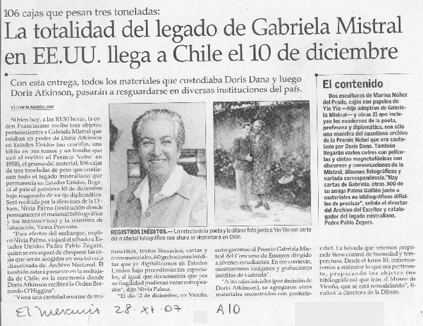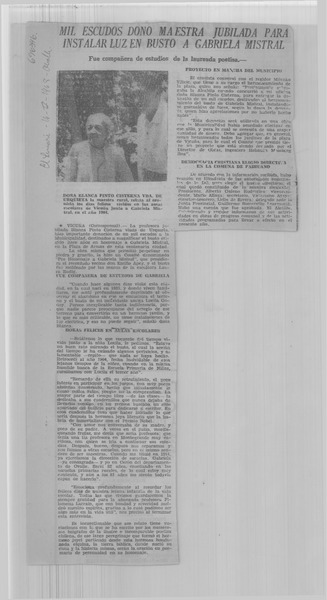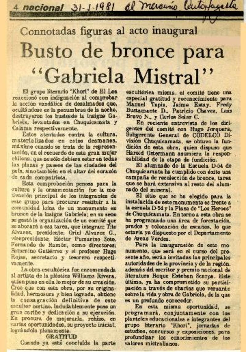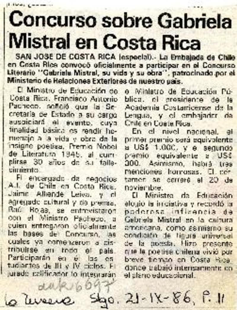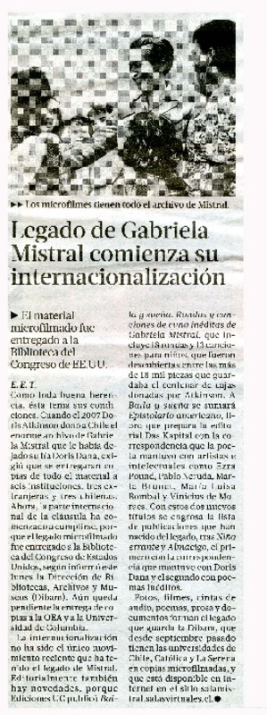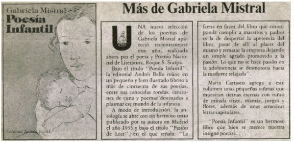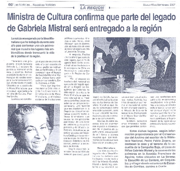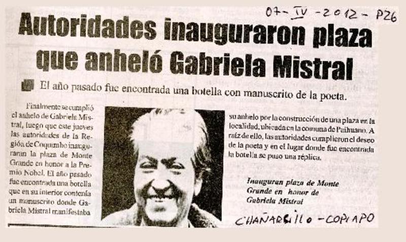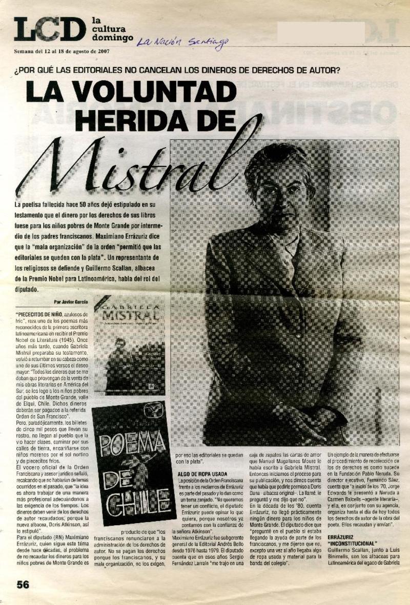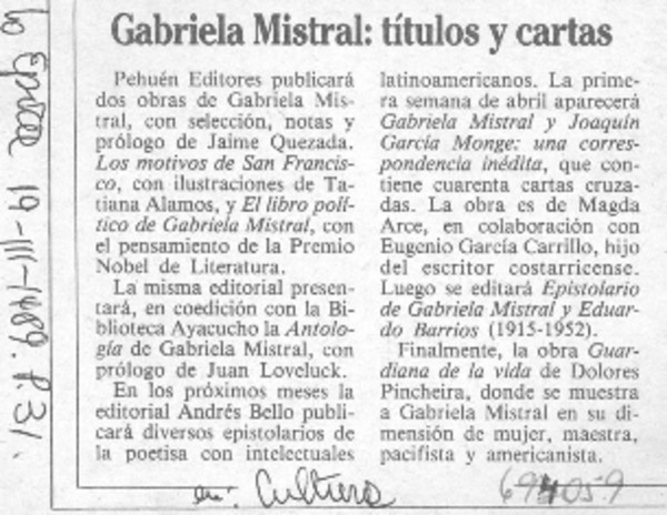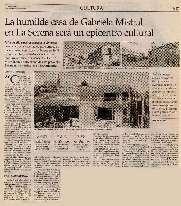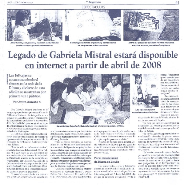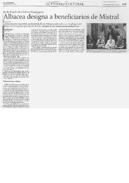 Albacea designa a beneficiarios de Mistral [artículo] Antonieta Cádiz.