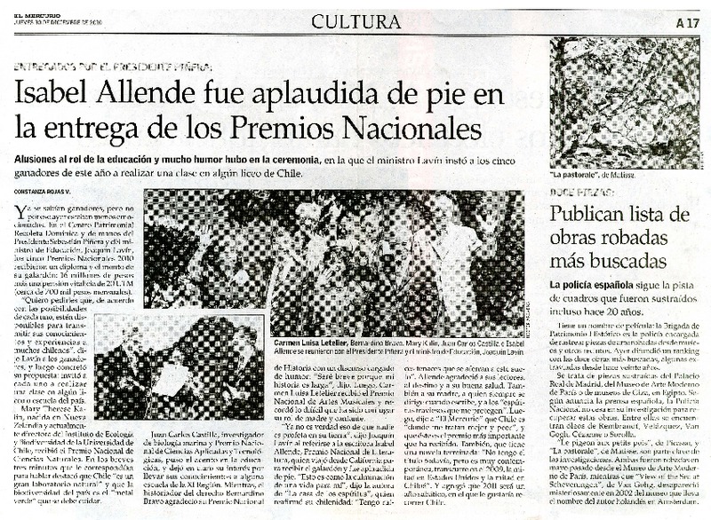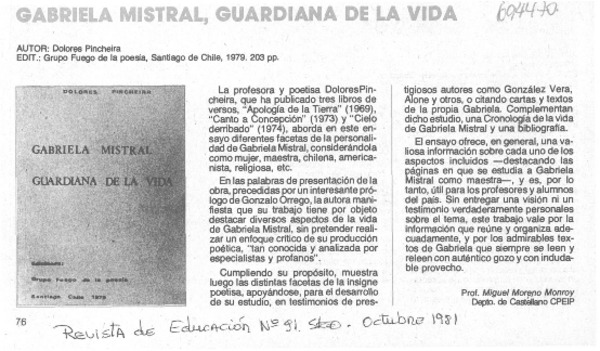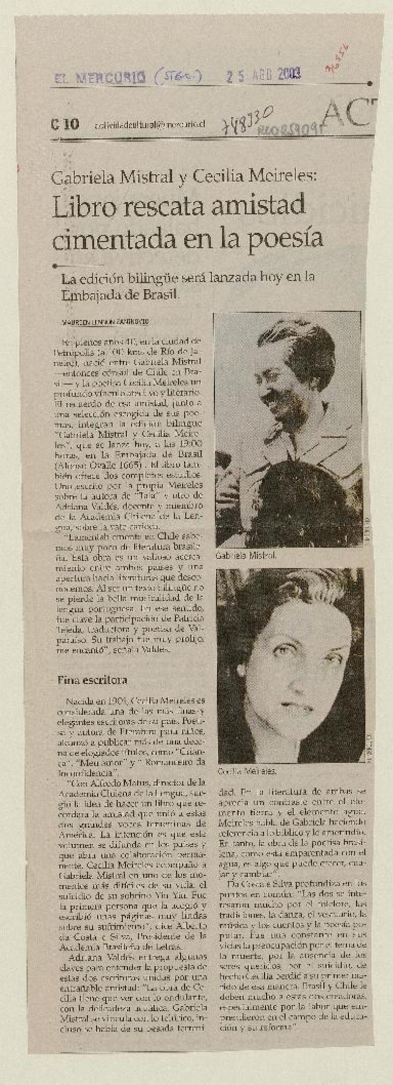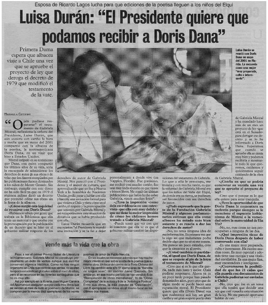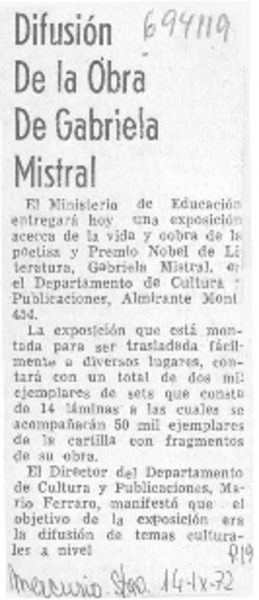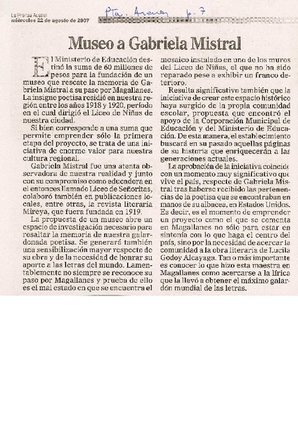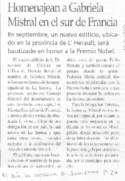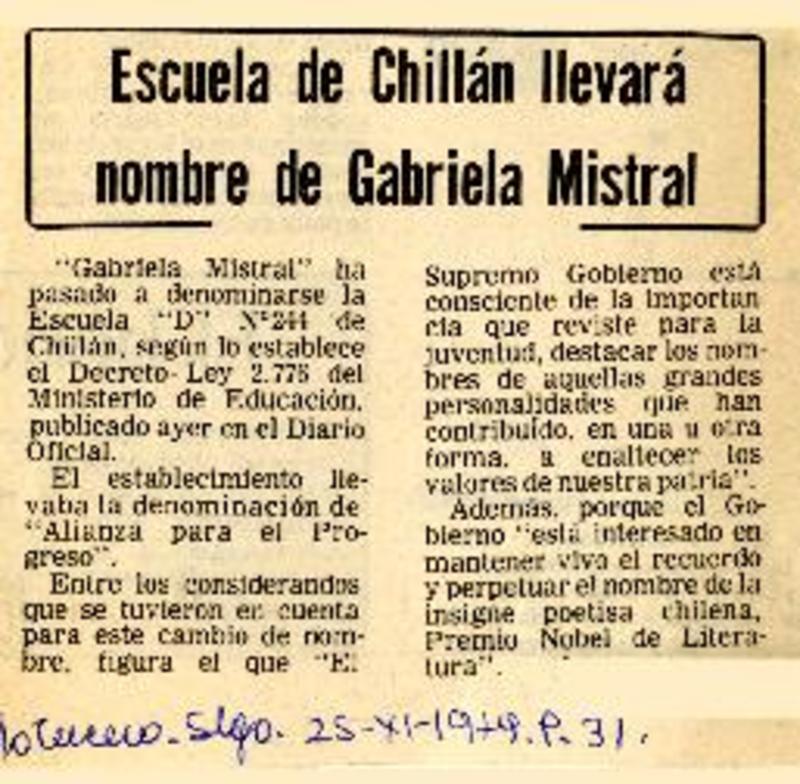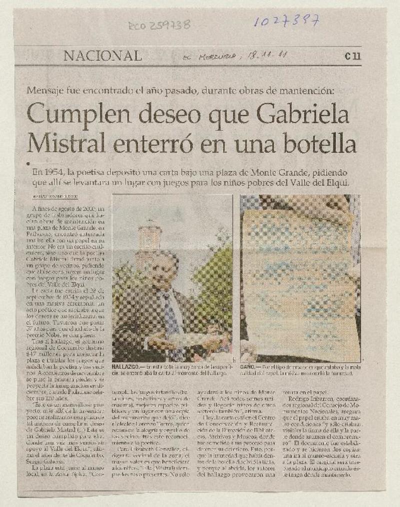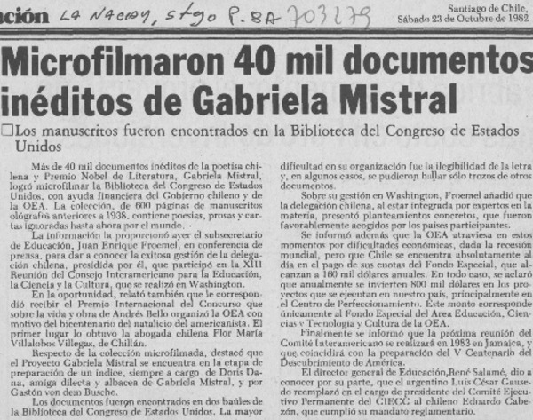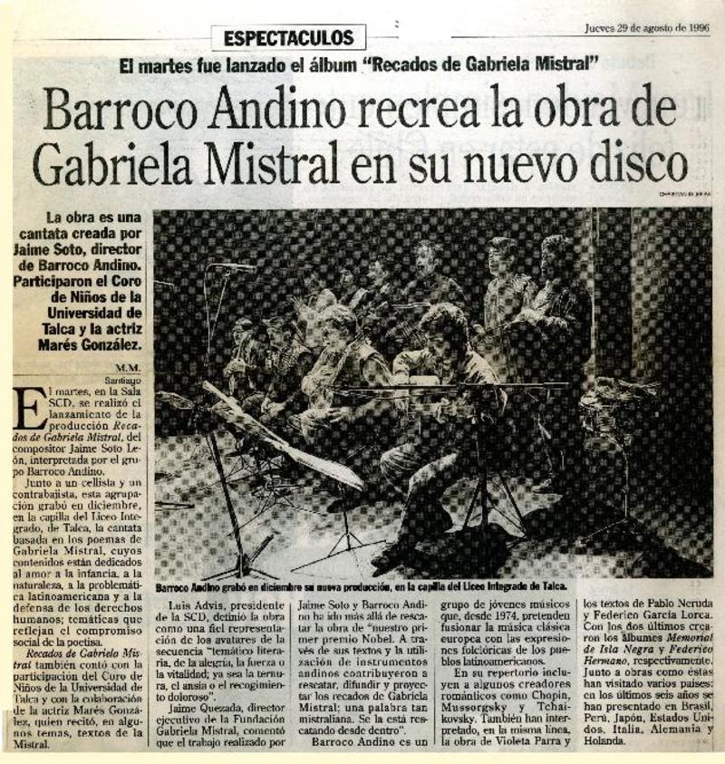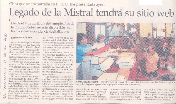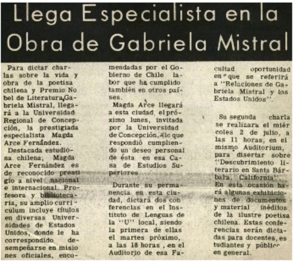 Albacea designa a beneficiarios de Mistral [artículo] Antonieta Cádiz.