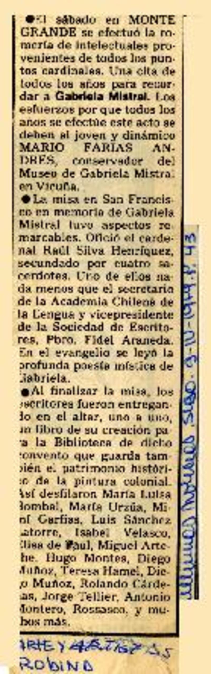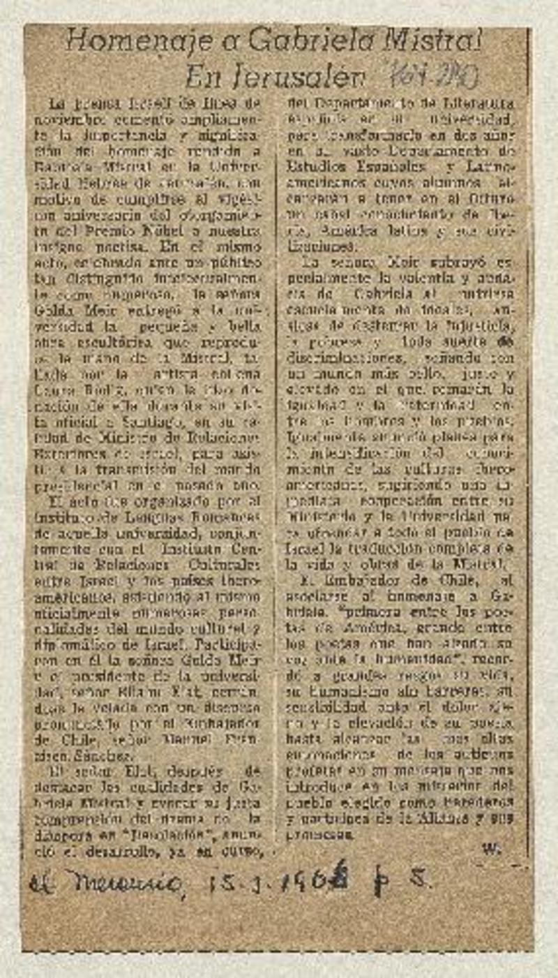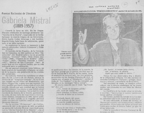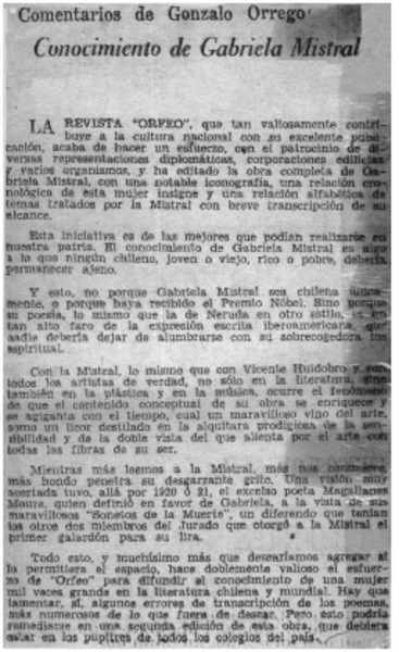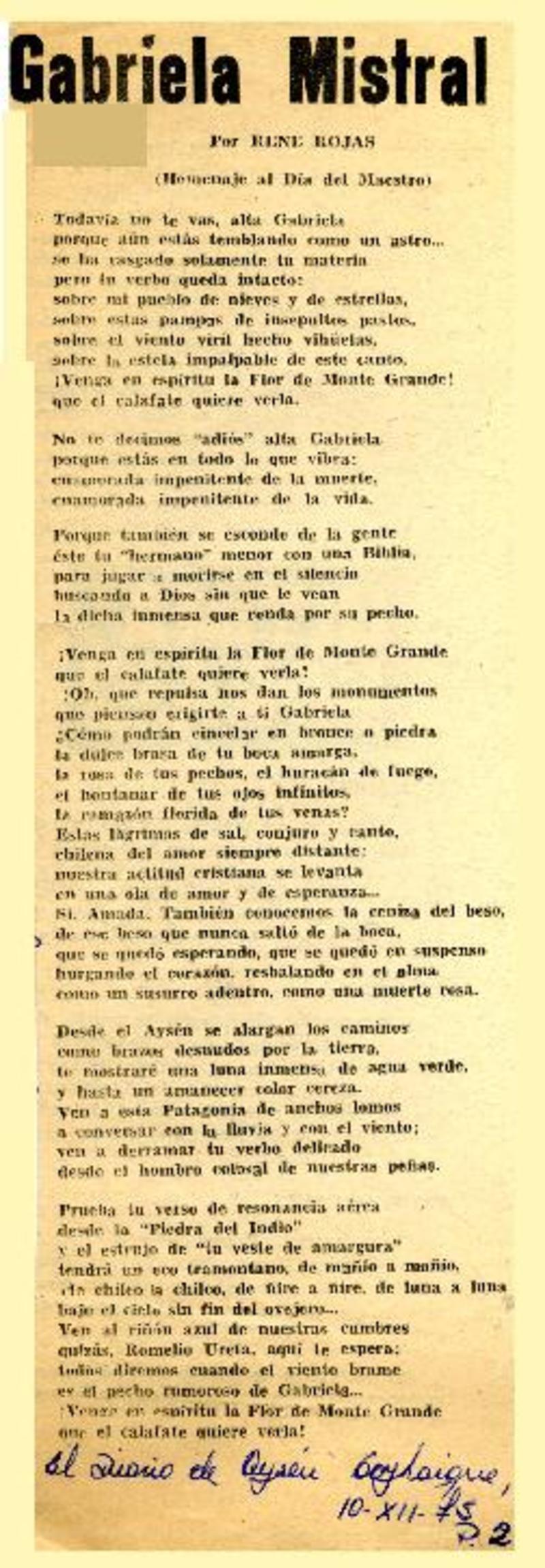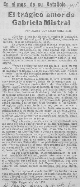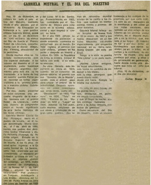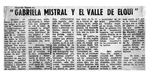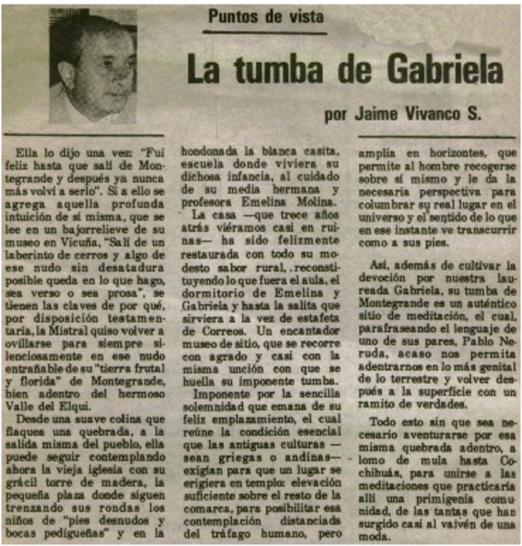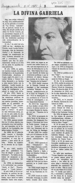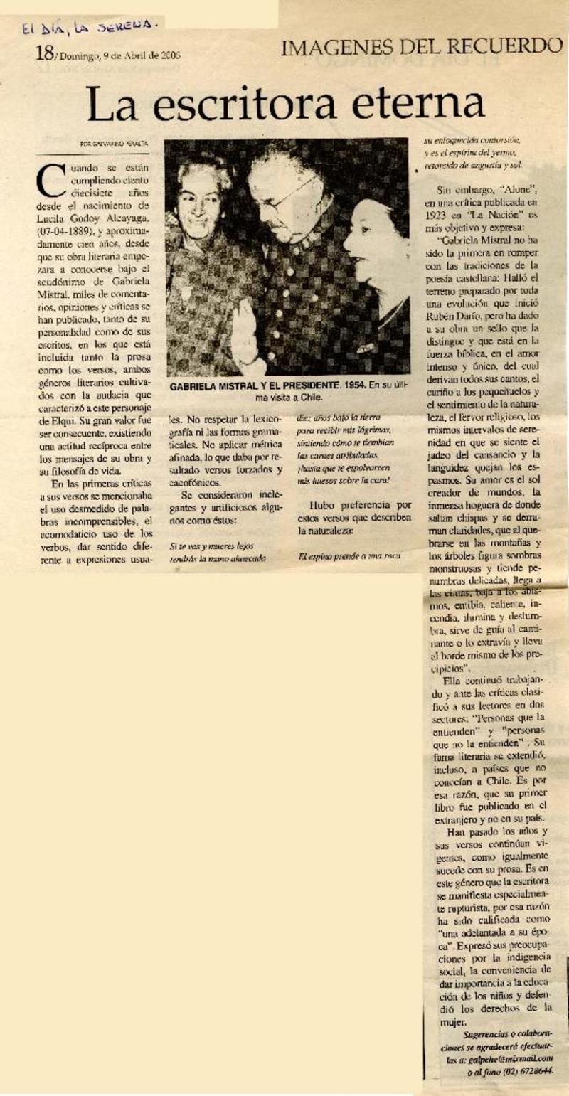 A 54 años de la muerte de la divina Gabriela Mistral [artículo] Héctor González V.