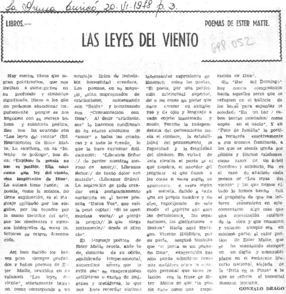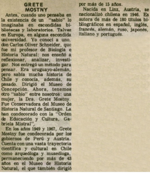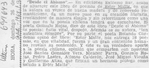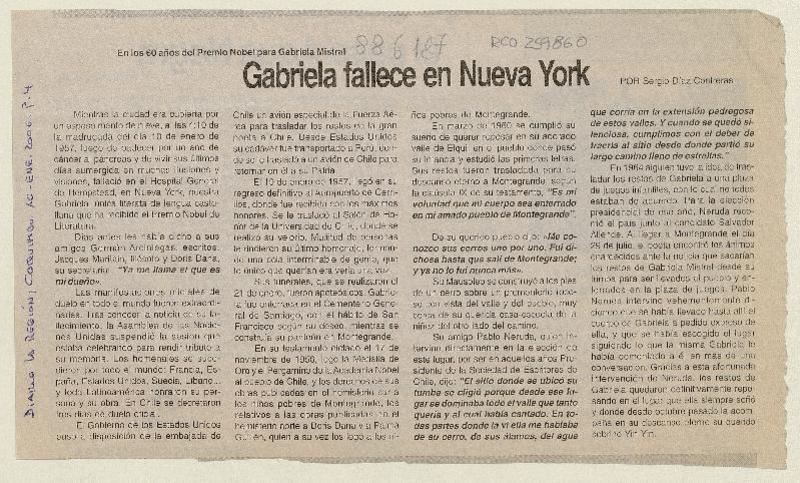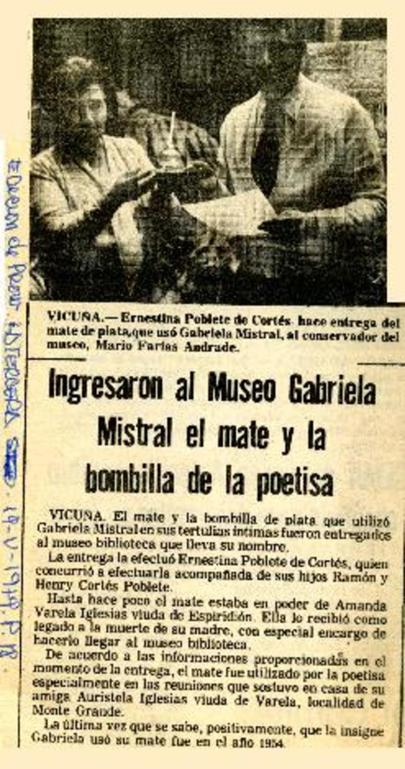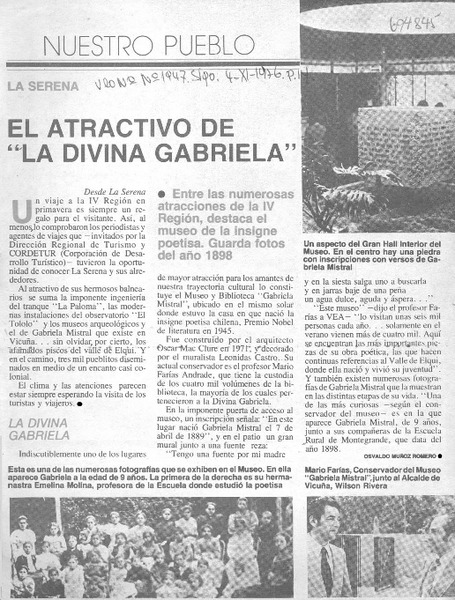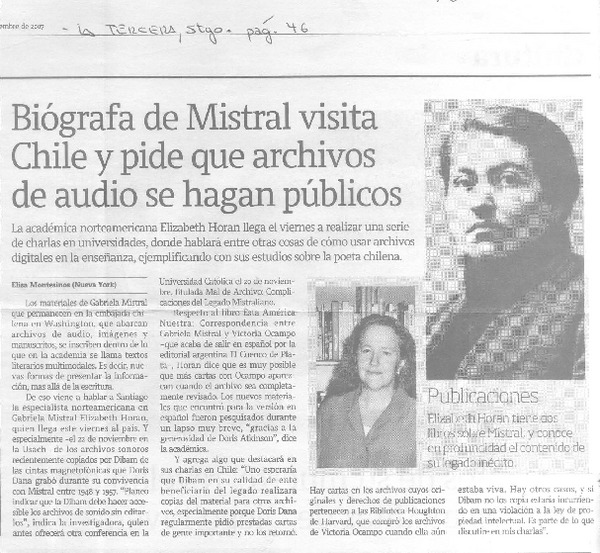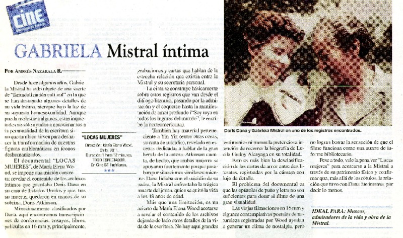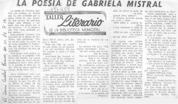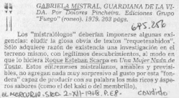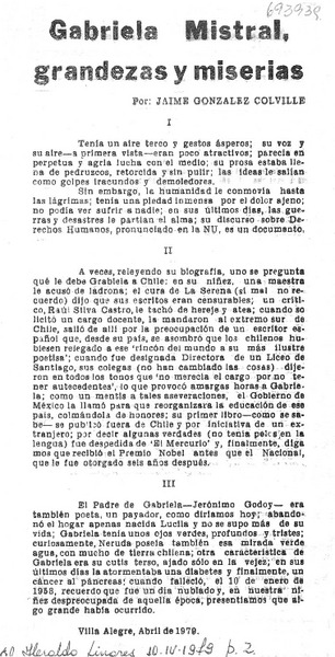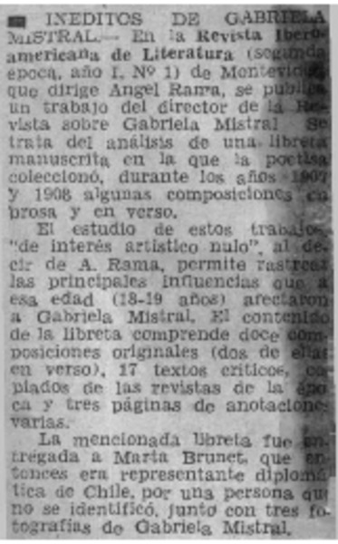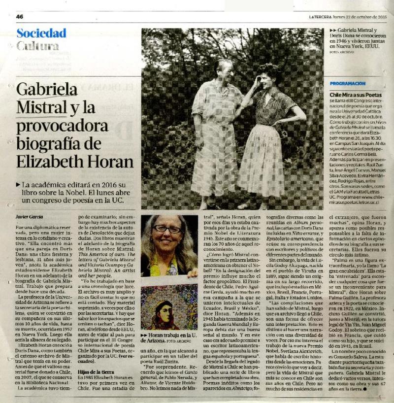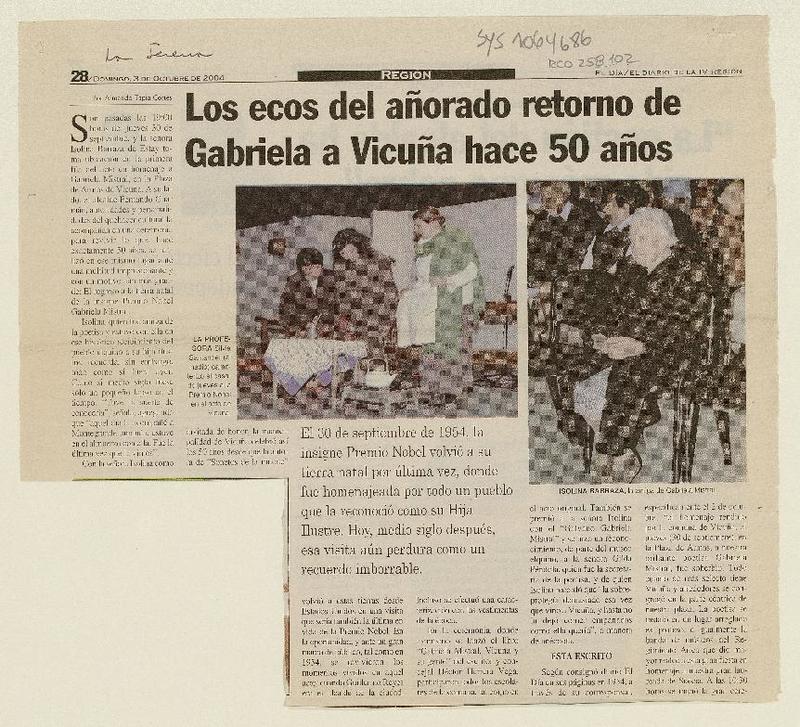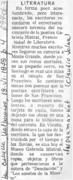 A 54 años de la muerte de la divina Gabriela Mistral [artículo] Héctor González V.