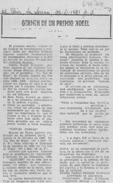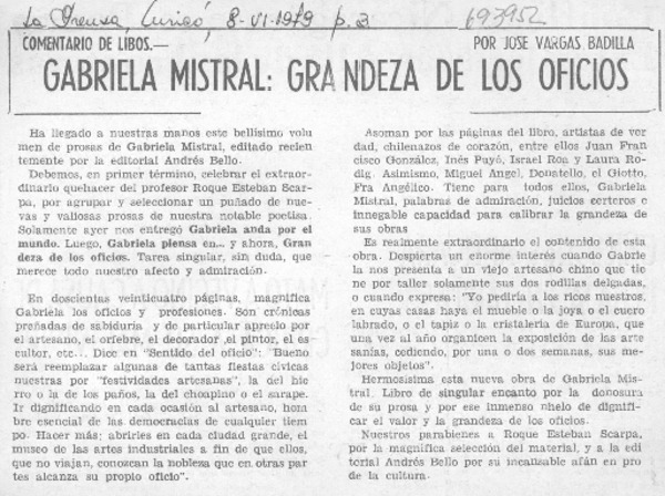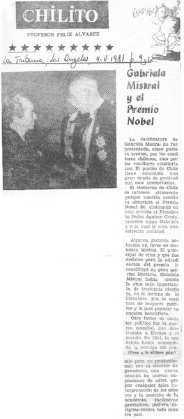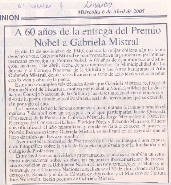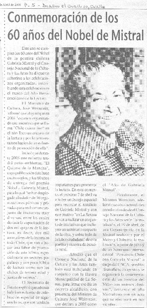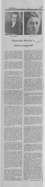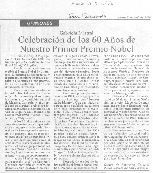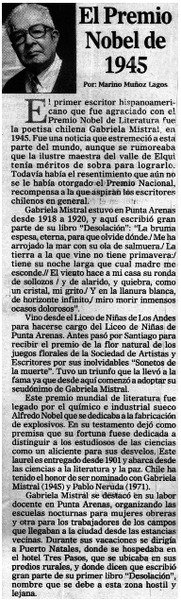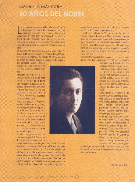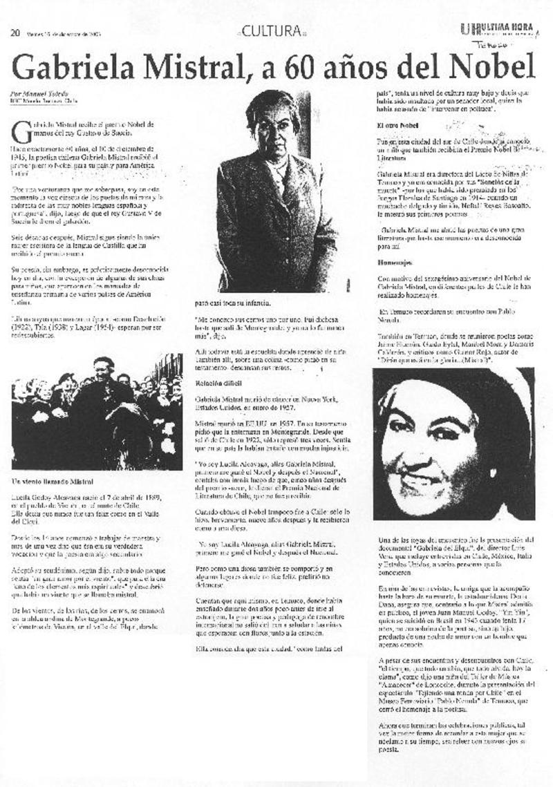 A 60 años del Premio Nobel de Gabriela Mistral [artículo] José Osorio.