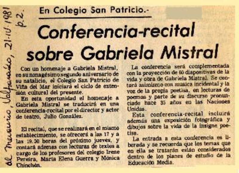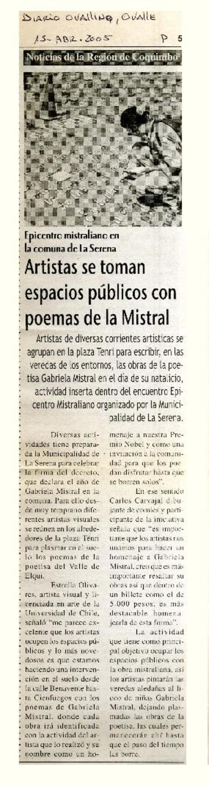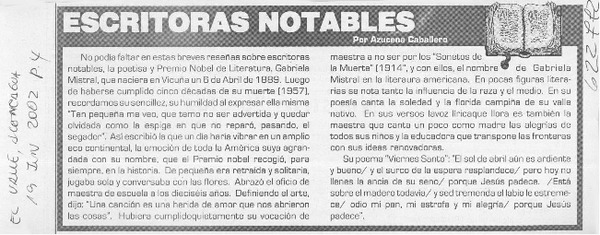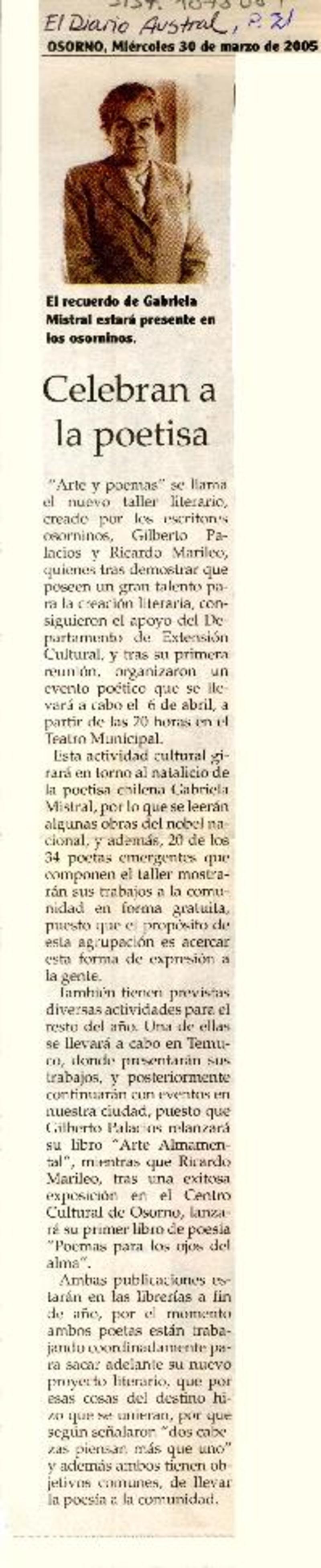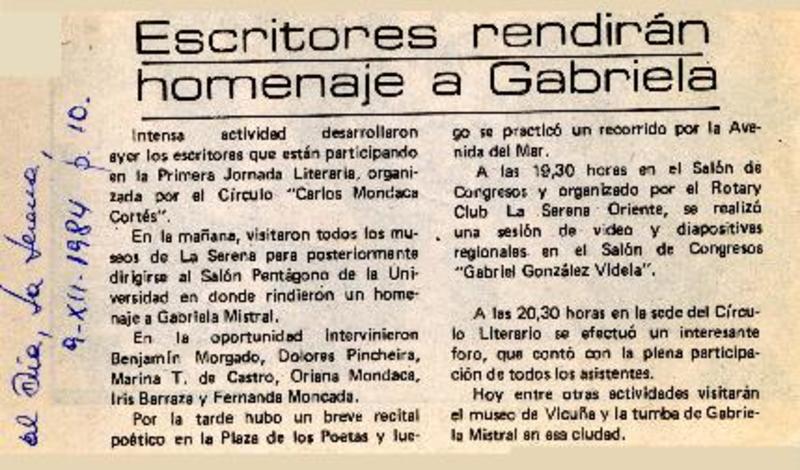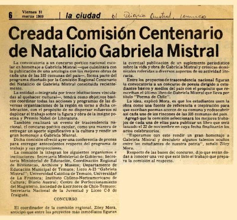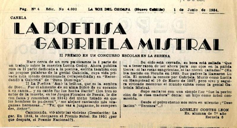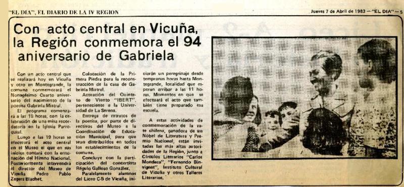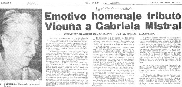 Natalicio de Gabriela Mistral conmemoran hoy. [artículo]