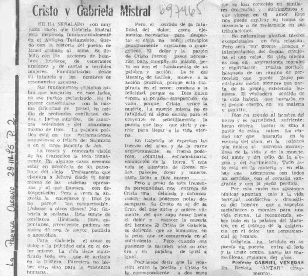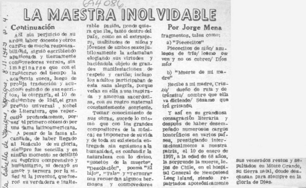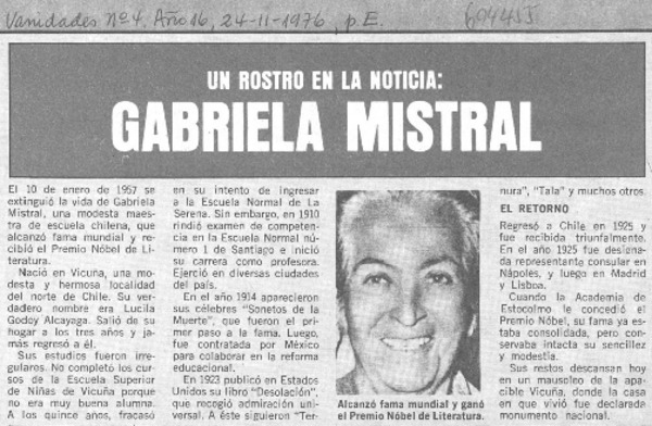 A 24 años de la muerte de Gabriela Mistral. [artículo]
