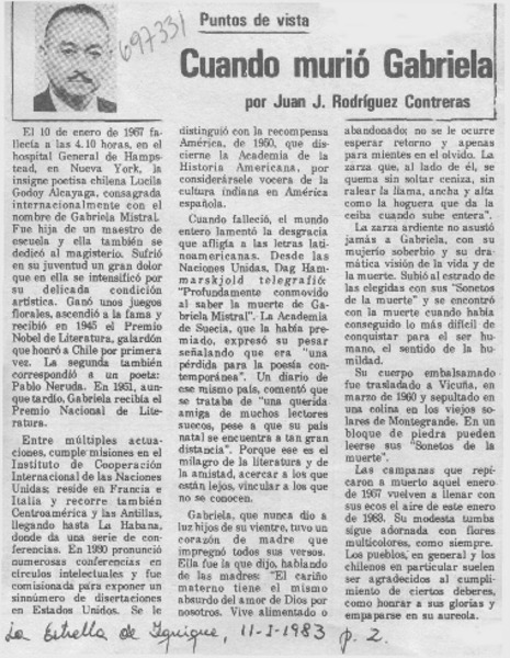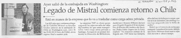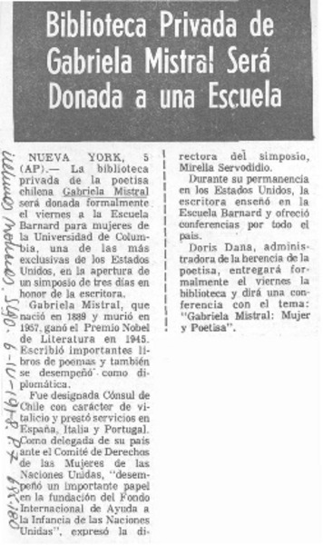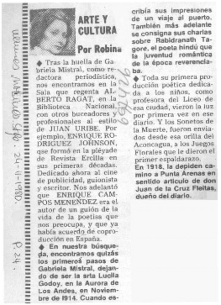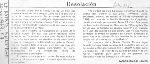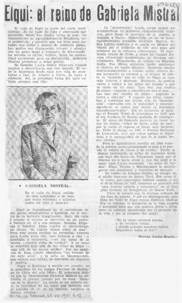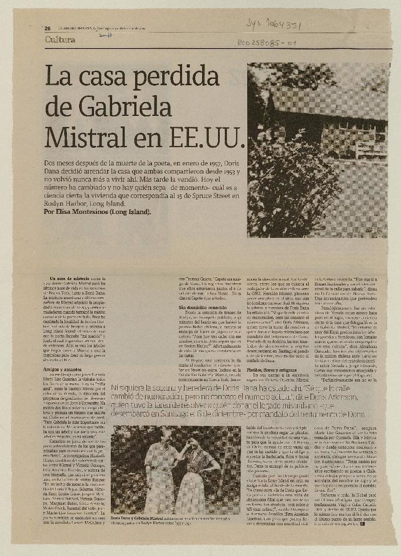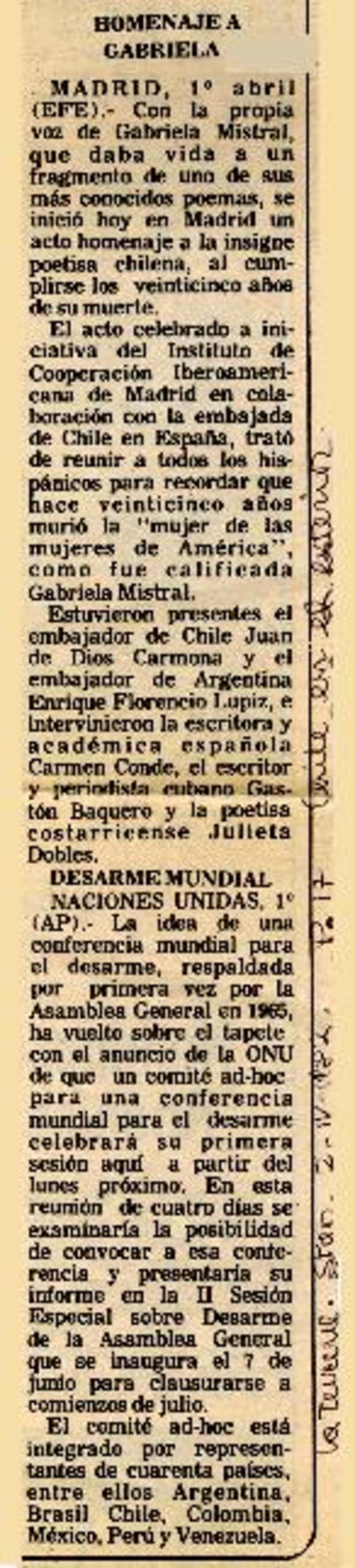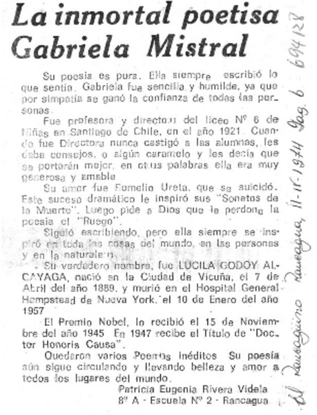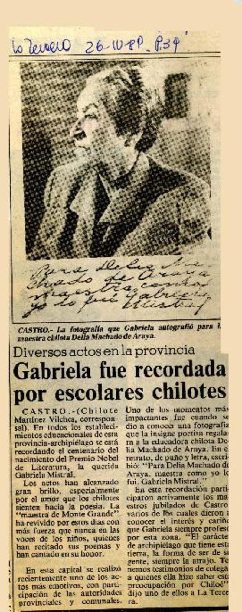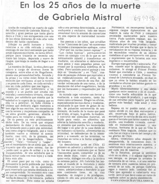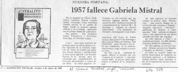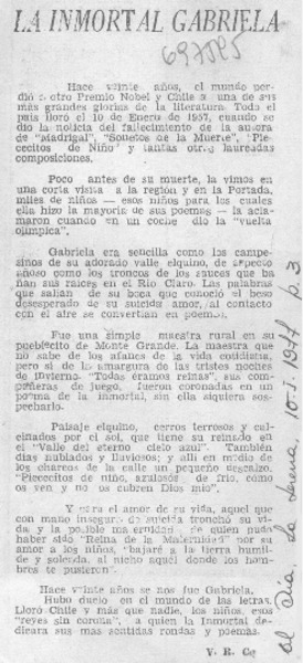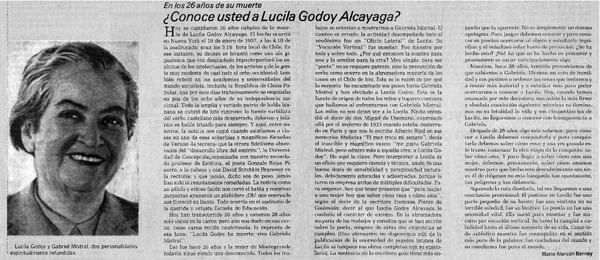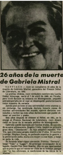 26 años de la muerte de Gabriela Mistral. [artículo]