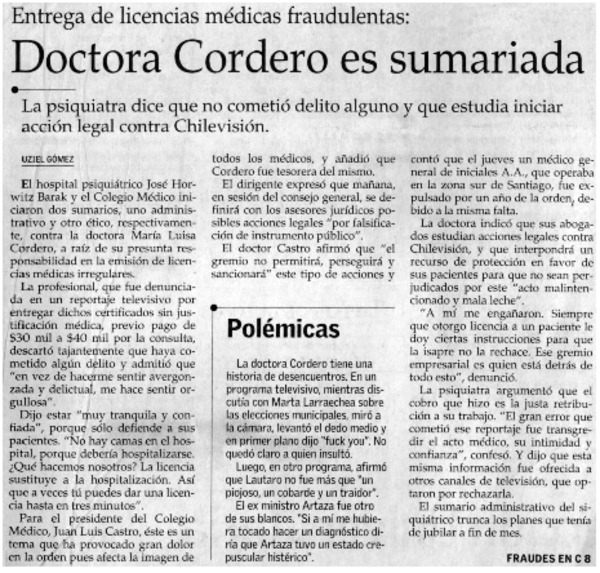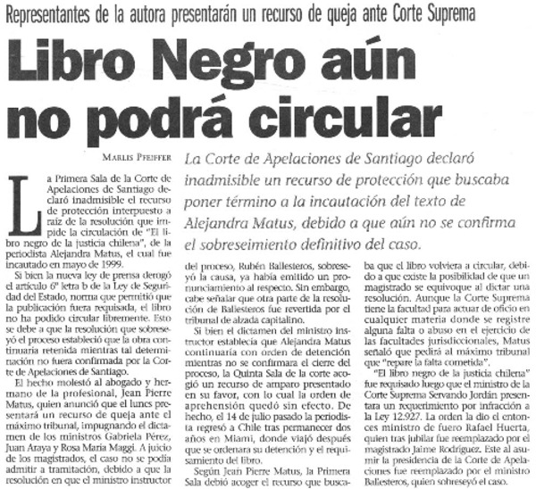 Acción legal en contra de polémico libro [artículo] Andrea Loreiro.