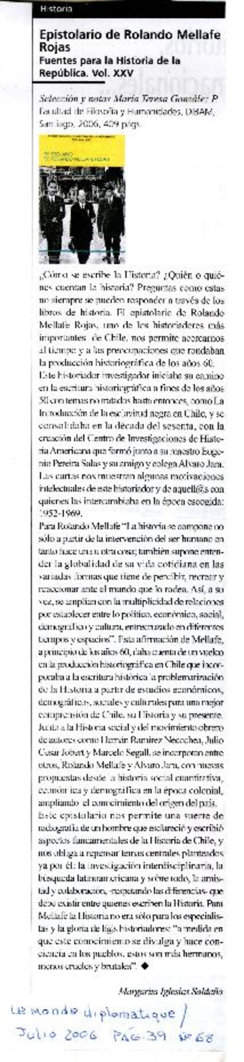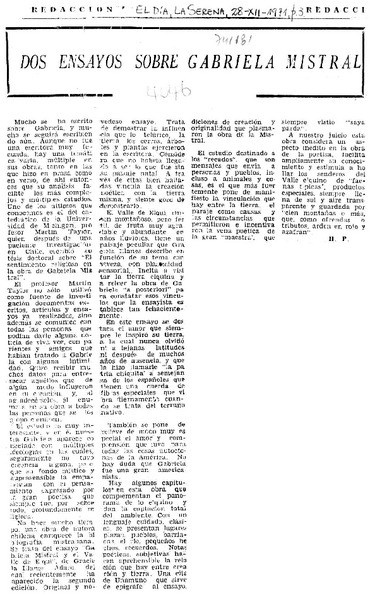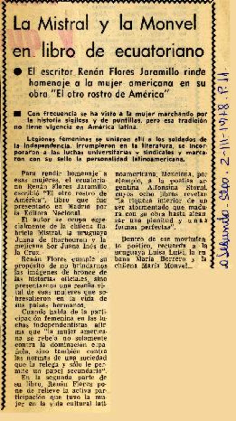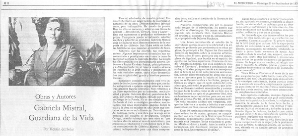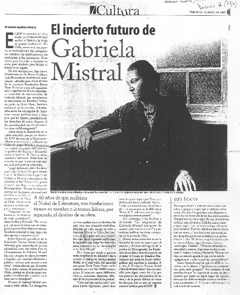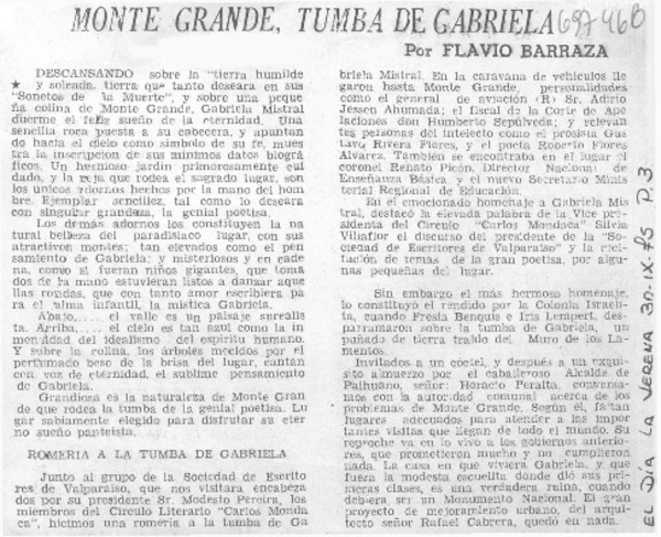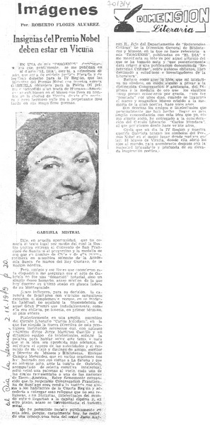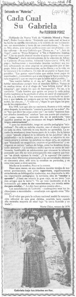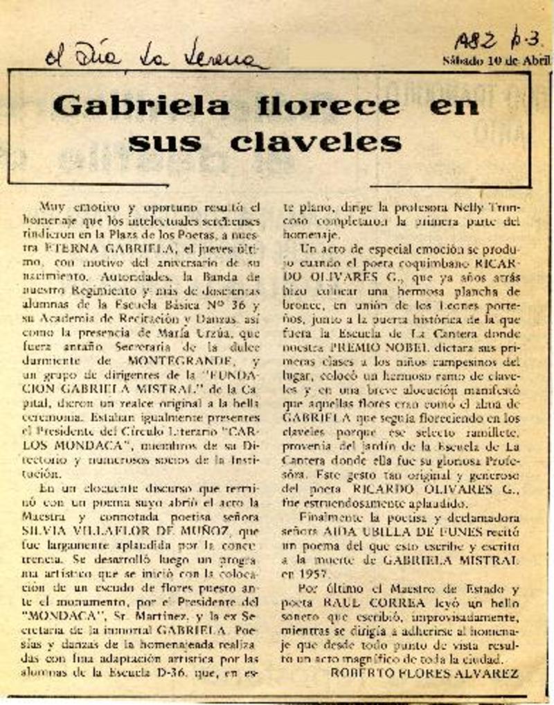 A 22 años de la muerte de Gabriela Mistral [artículo] Roberto Flores Alvarez.