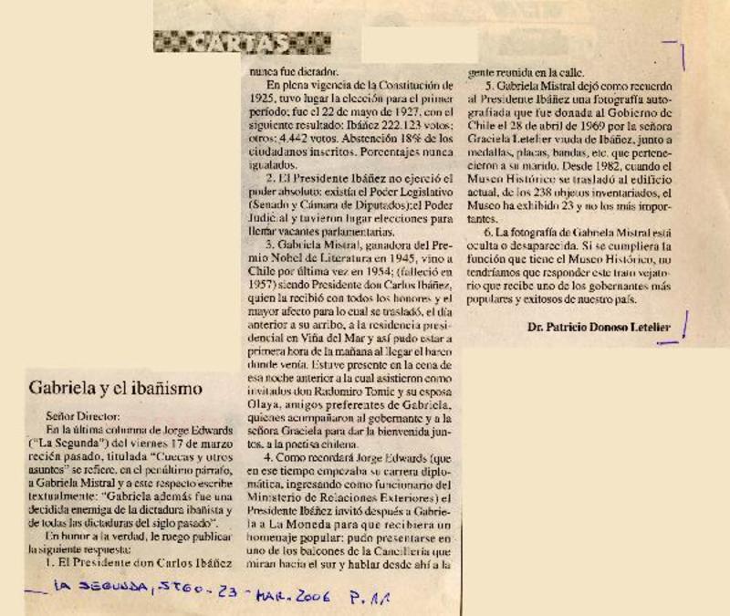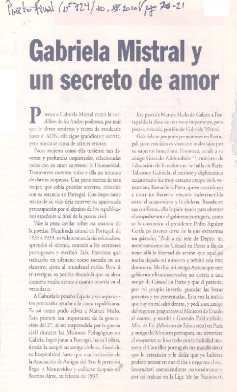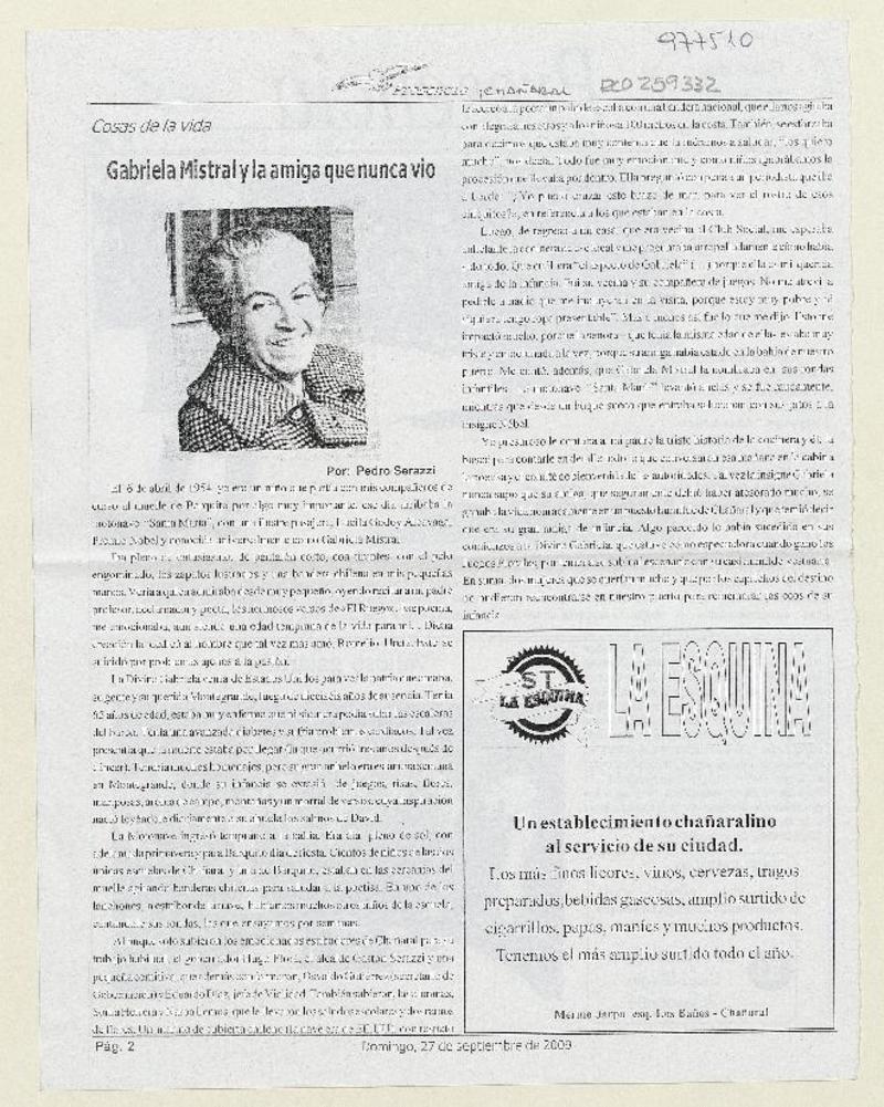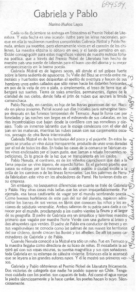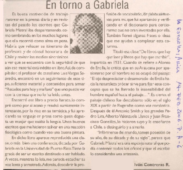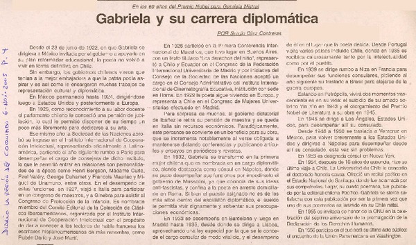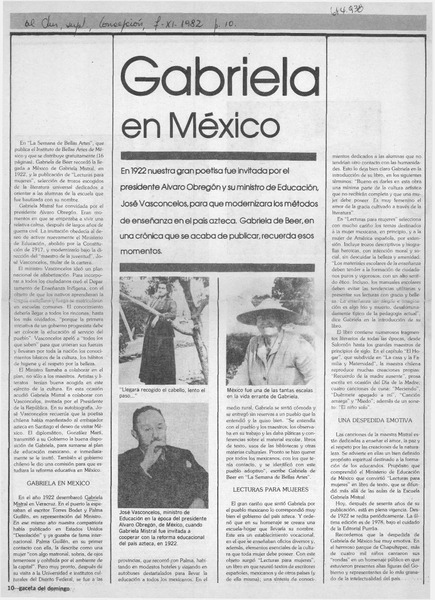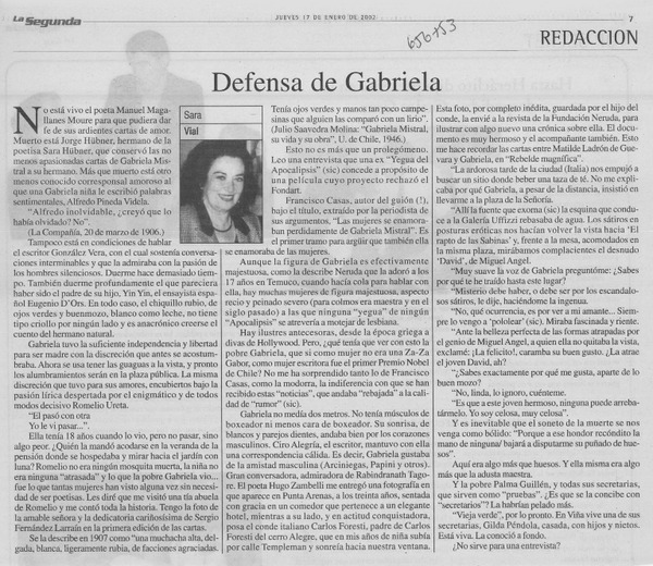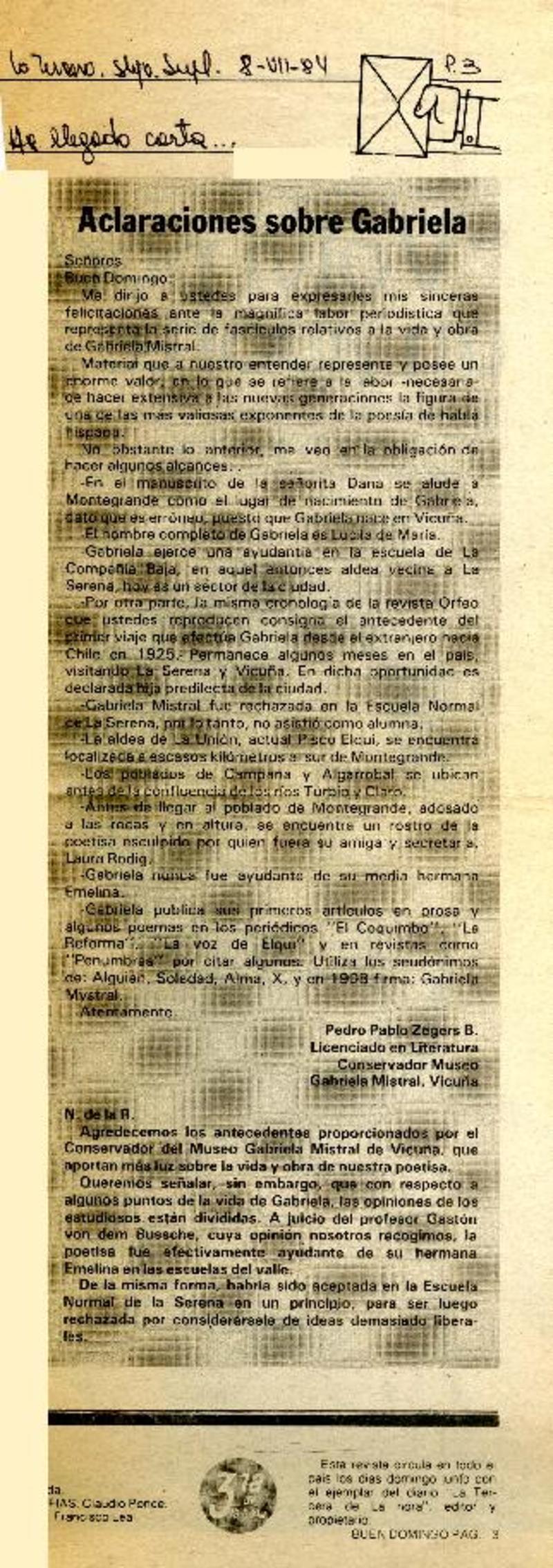 Aclaraciones sobre Gabriela [artículo] Pedro Pablo Zegers Blachet.