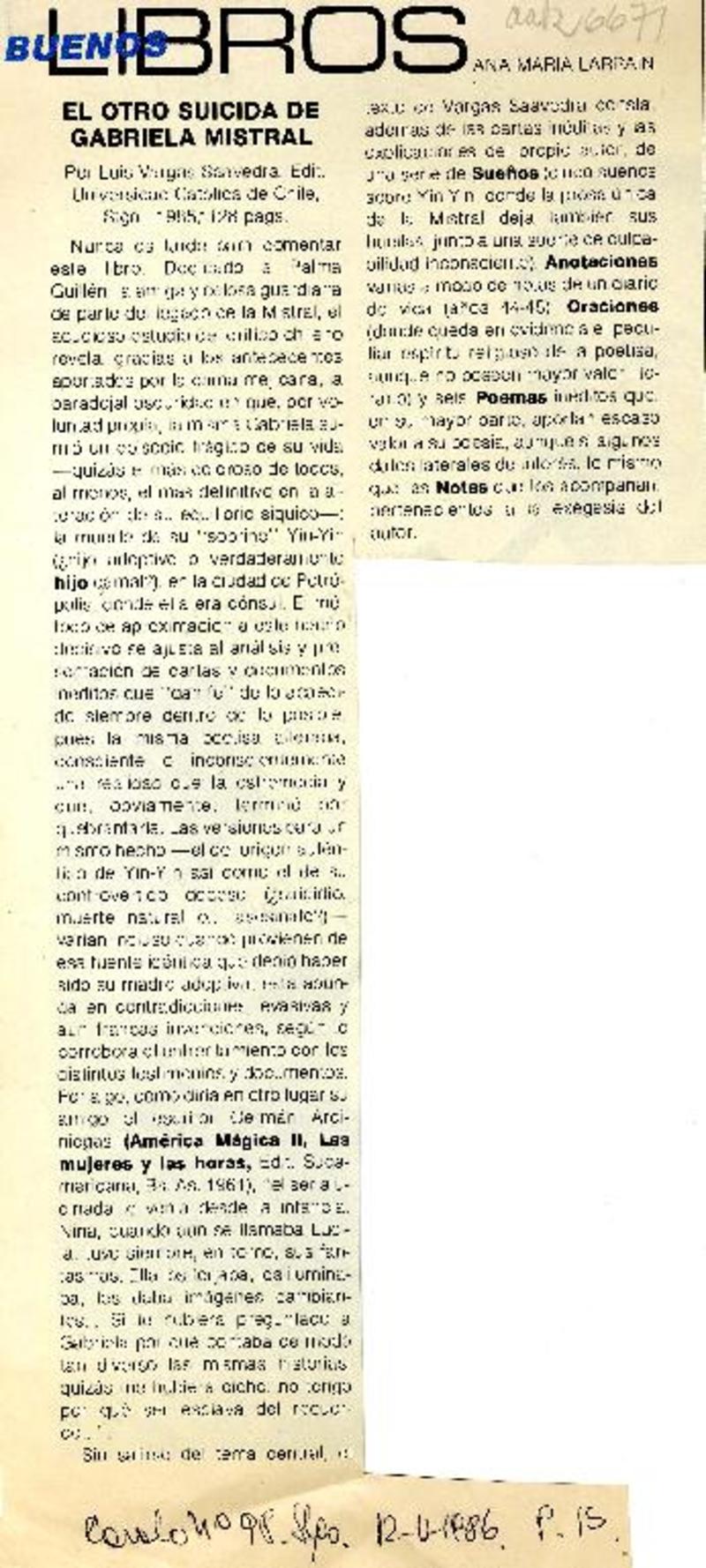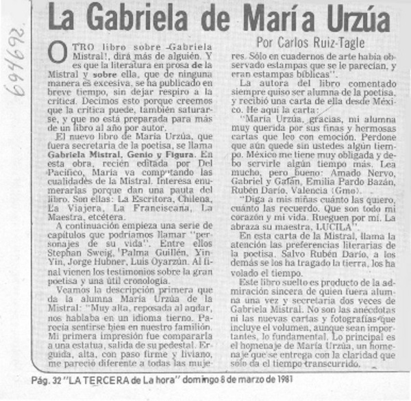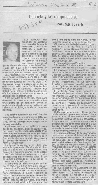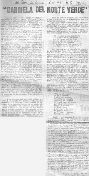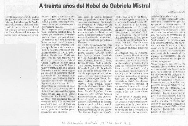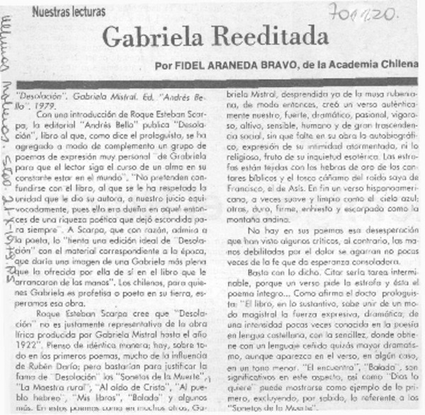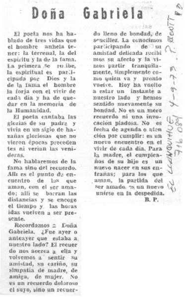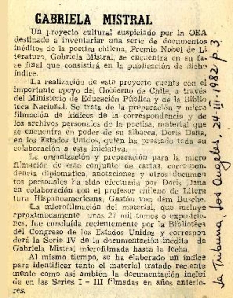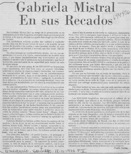 Aclaraciones sobre Gabriela [artículo] Pedro Pablo Zegers Blachet.