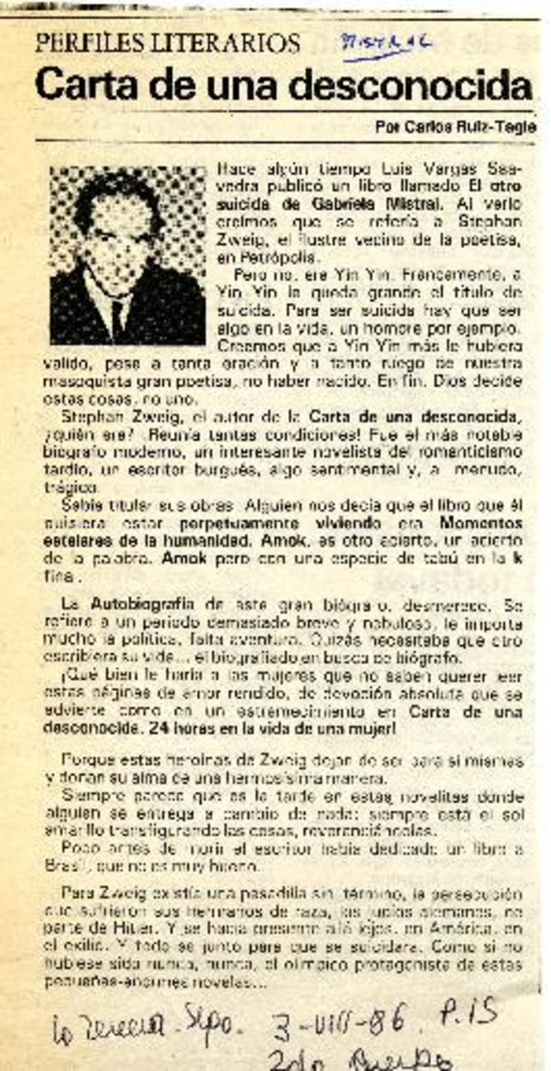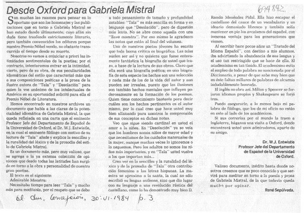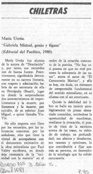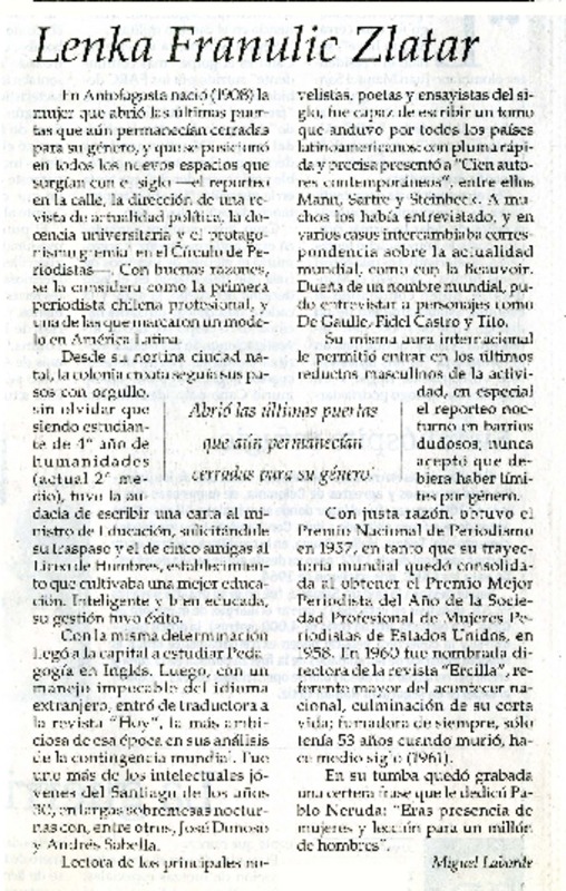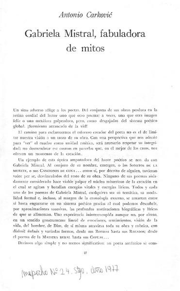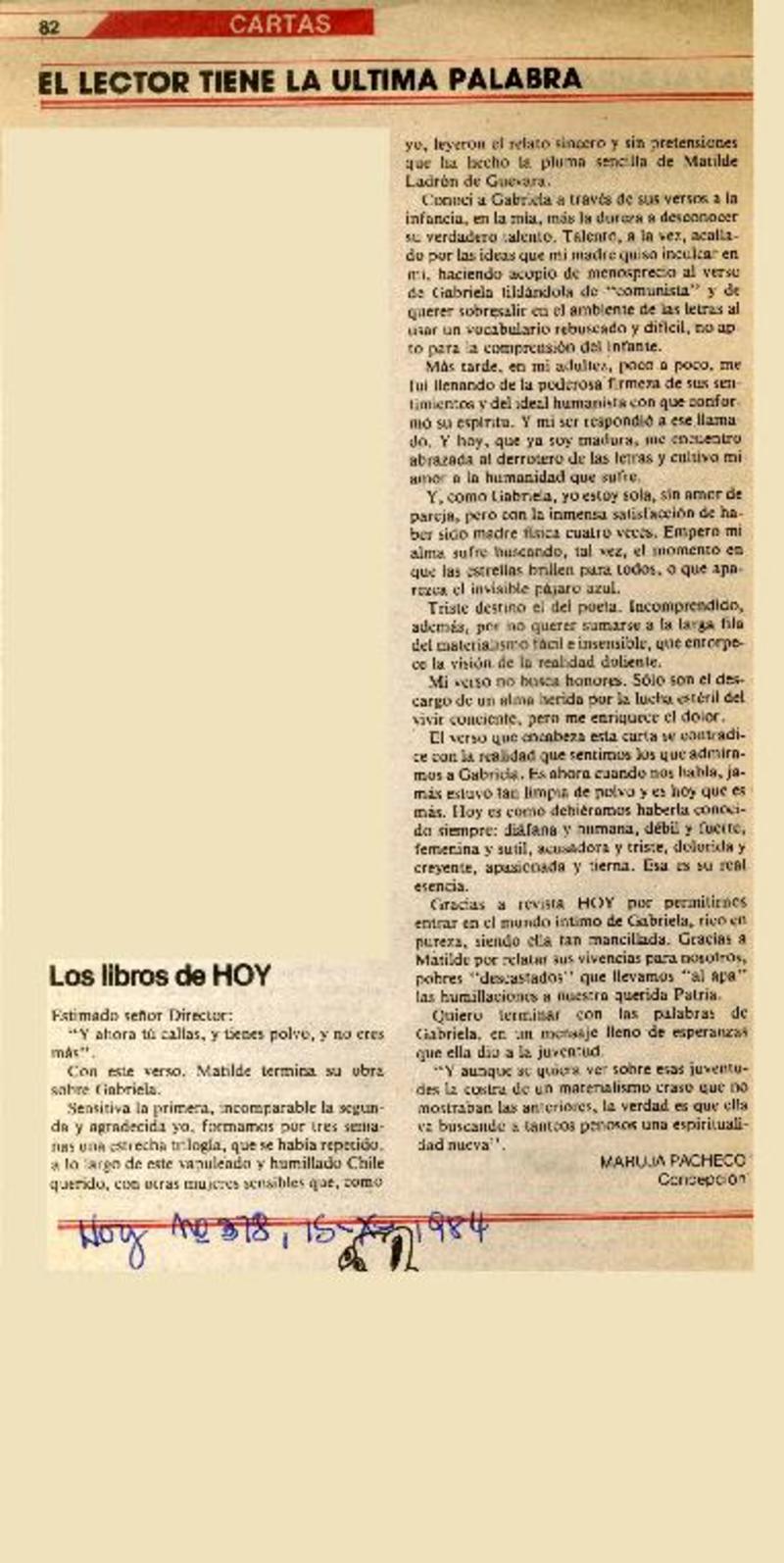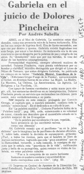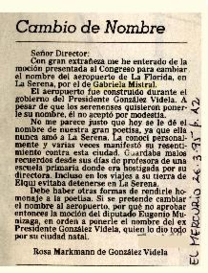 Aclaraciones sobre Gabriela [artículo] Pedro Pablo Zegers Blachet.