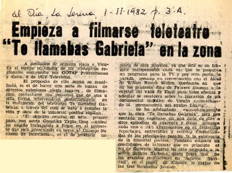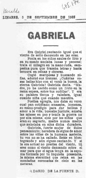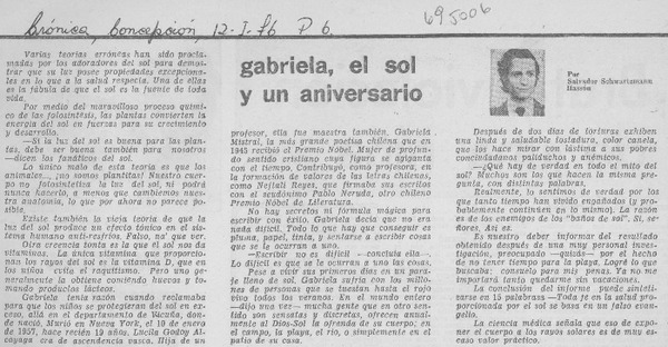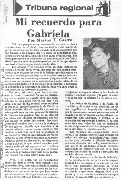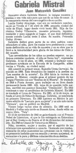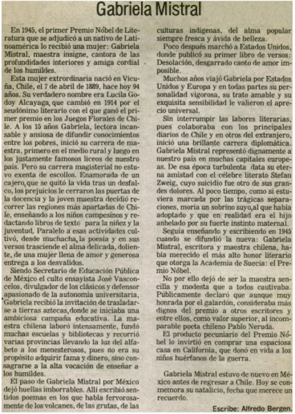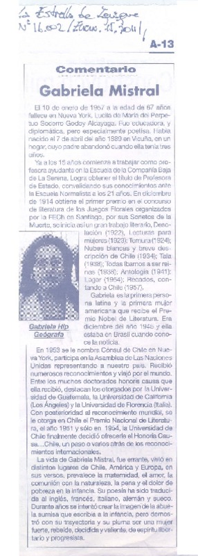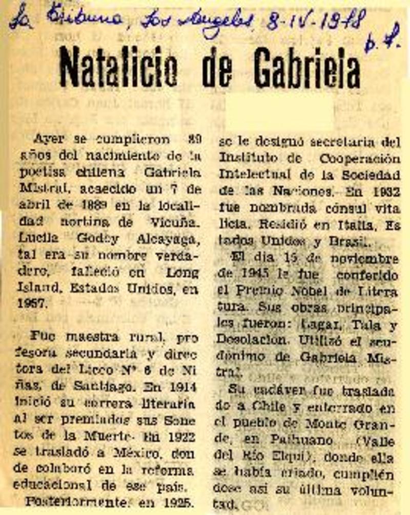 Natalicio de Gabriela [artículo] Alfredo Galaz Jiménez.
