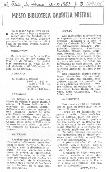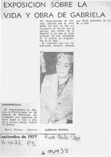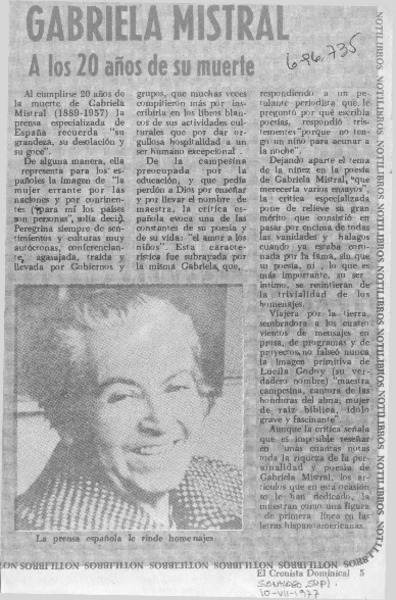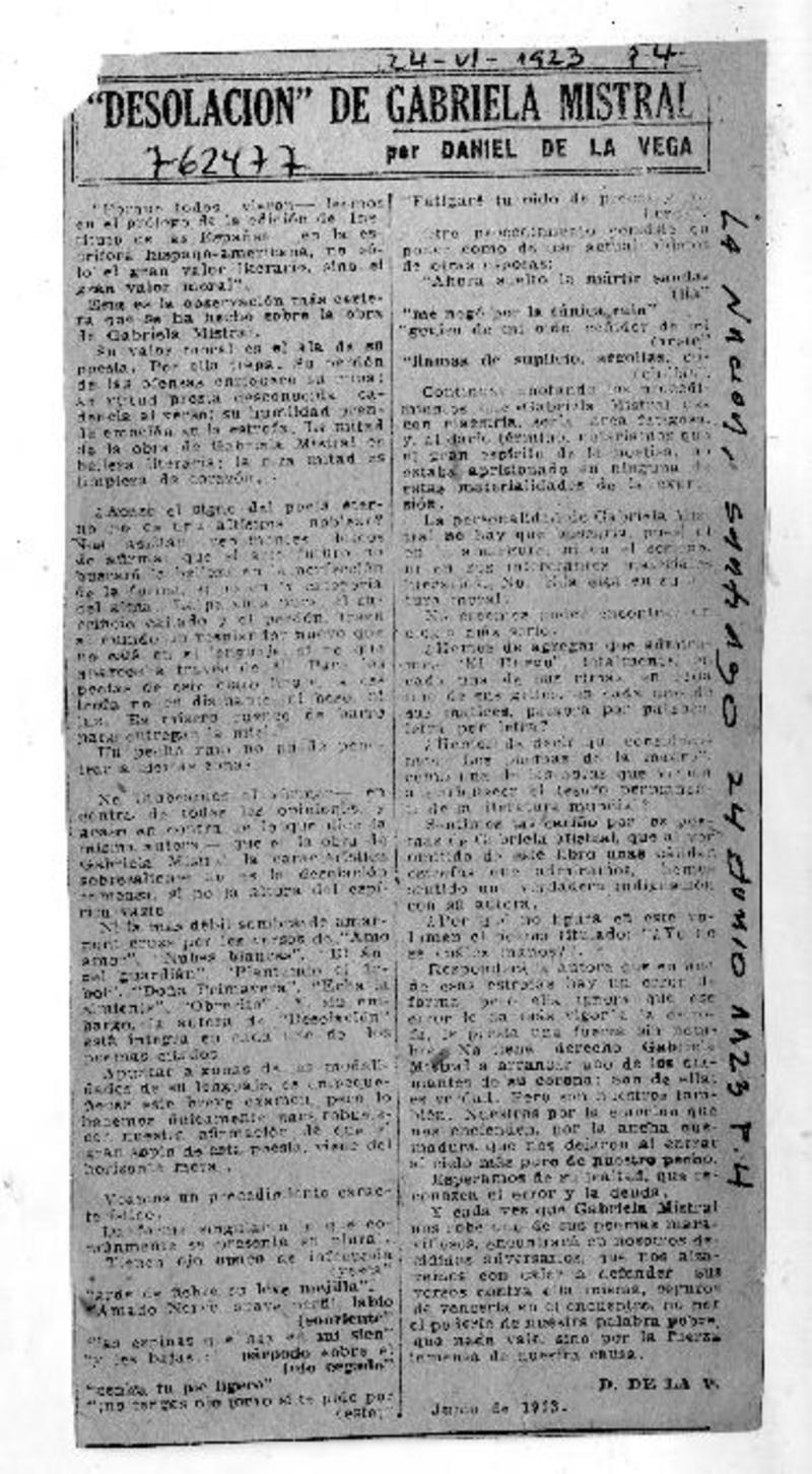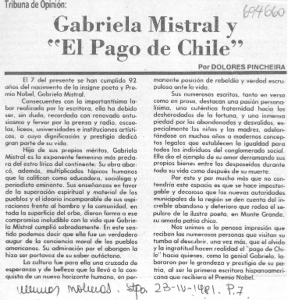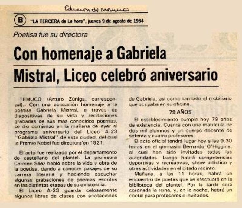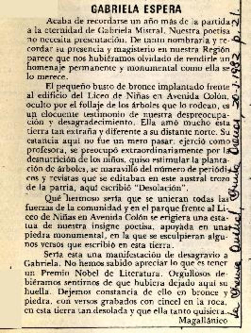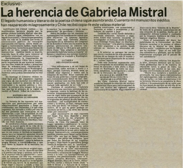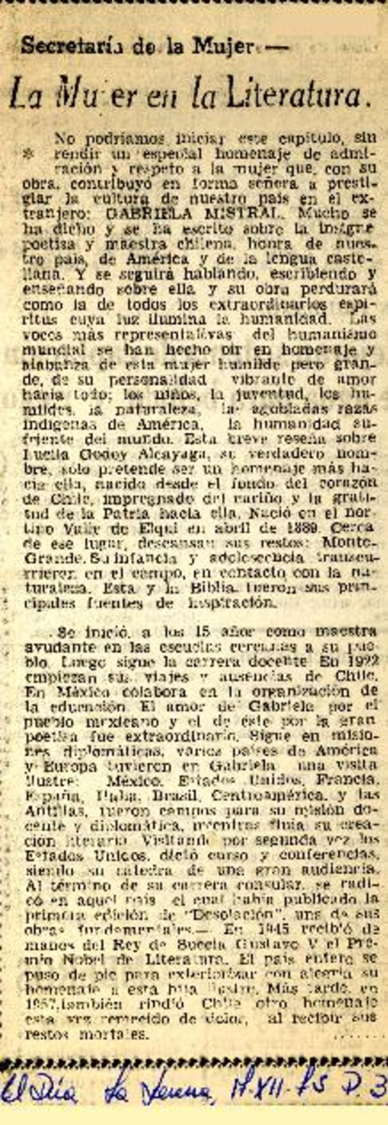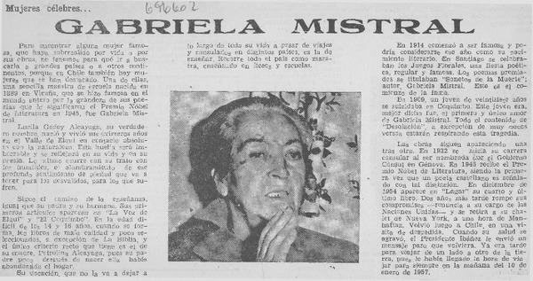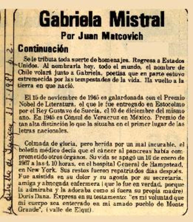 23 años de la muerte de Gabriela Mistral. [artículo]