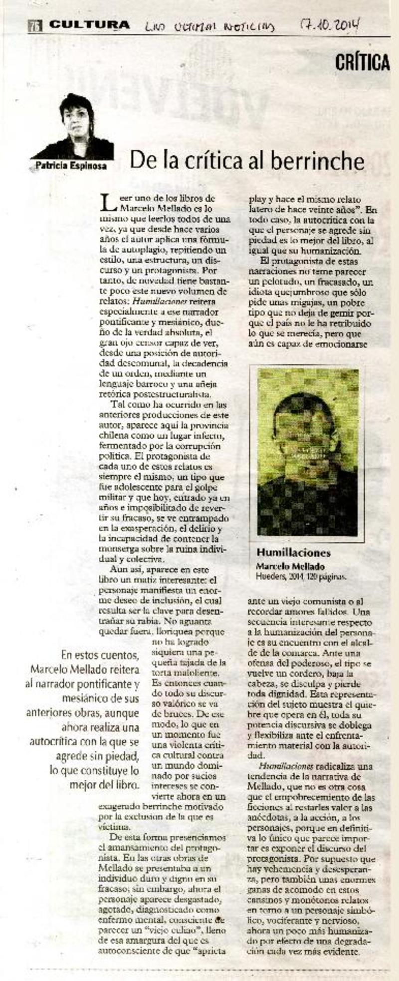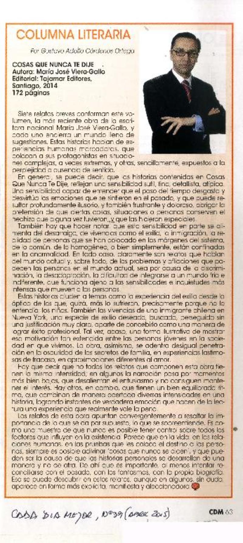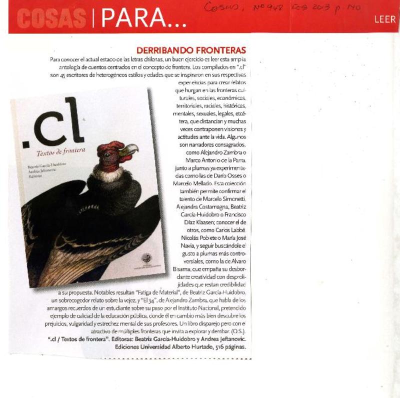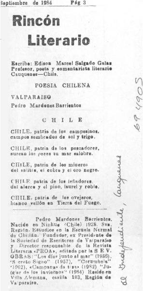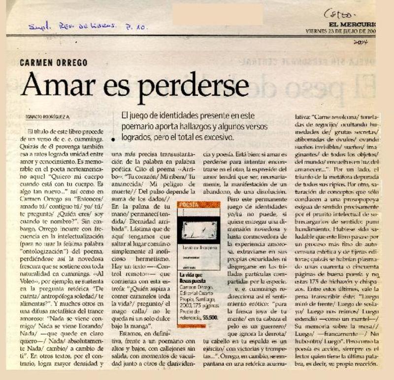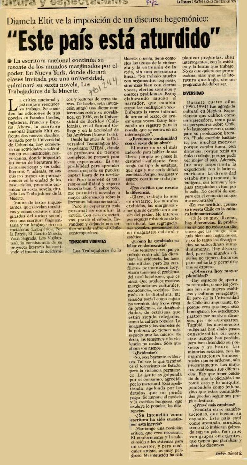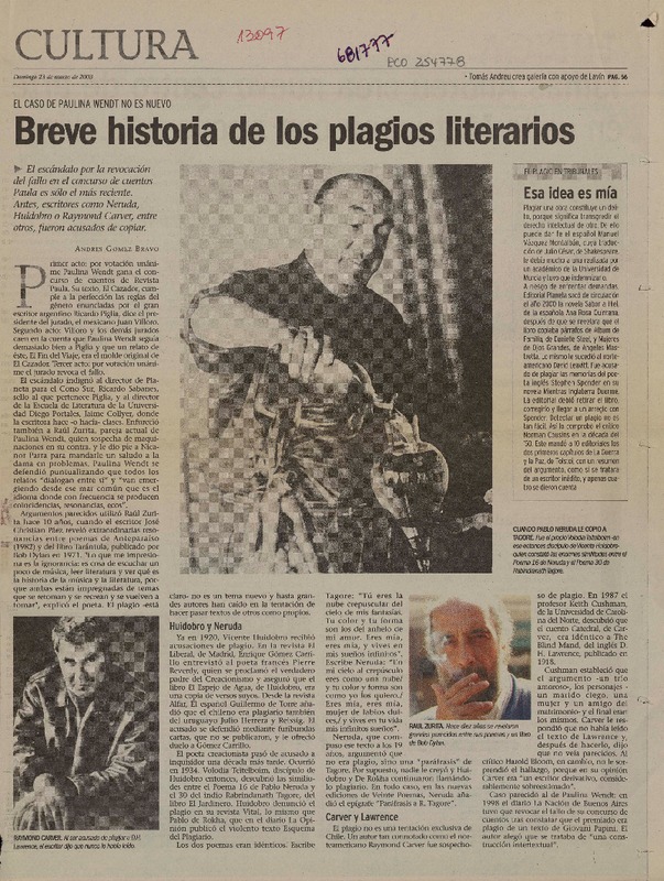 No me muero de pena porque los literatos chilenos me ignoran [artículo] Andrés Gómez Bravo.