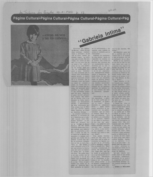 Nos olvidamos de Gabriela [artículo] Raúl Téllez Yañez.