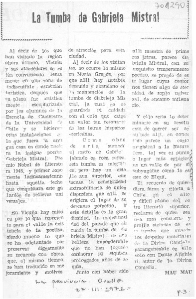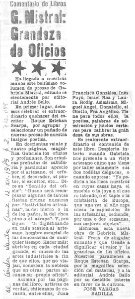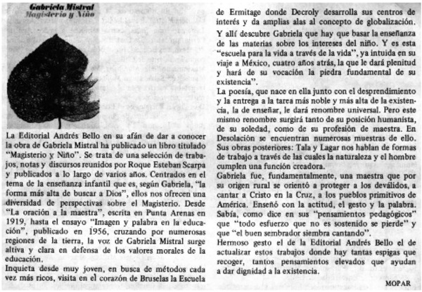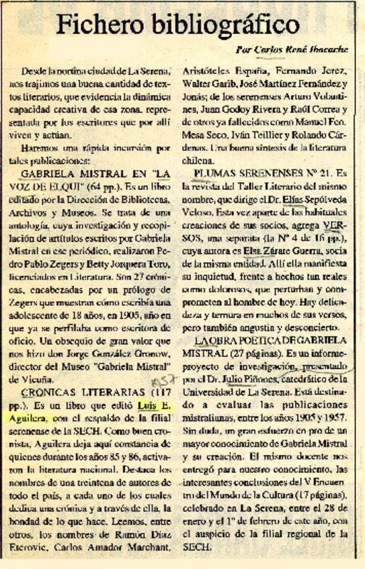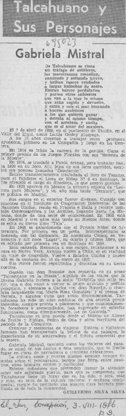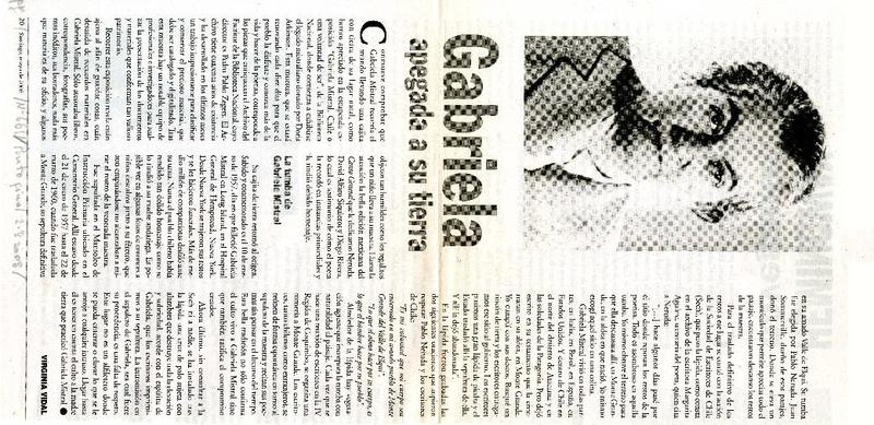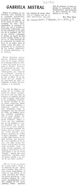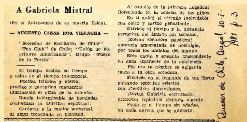 A Gabriela Mistral [artículo] Augusto César Roa Villagra.