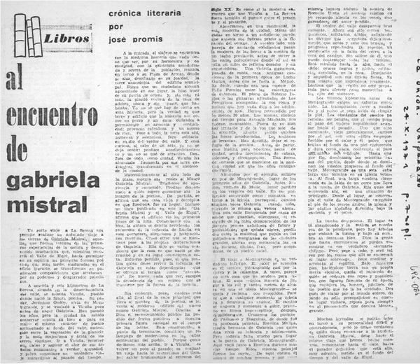 Al encuentro de Gabriela Mistral [artículo] José Promis.