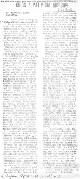Adiós a Patricia Morgan [artículo] Armando León Pacheco.