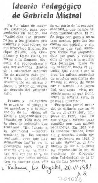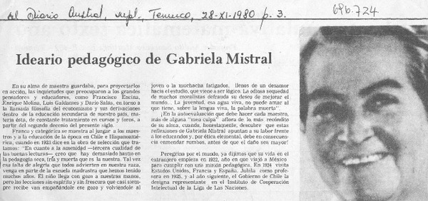Nuestra Premio Nobel y el Estado docente [artículo] Diego Ibáñez Langlois.
