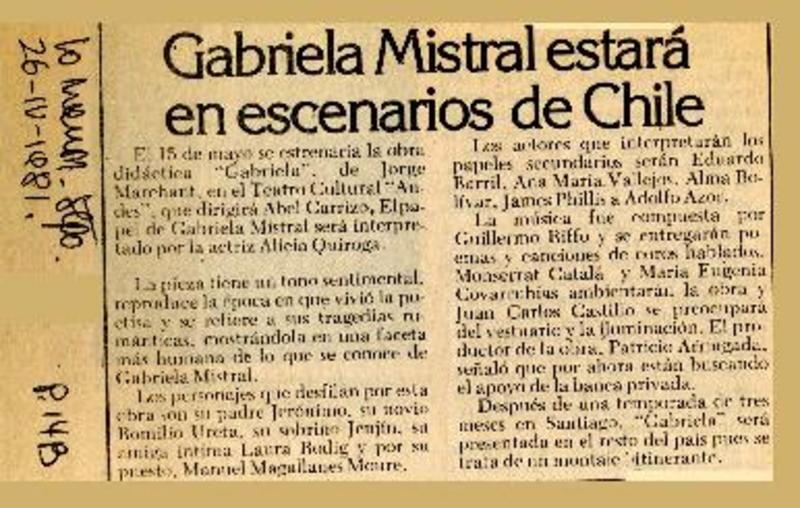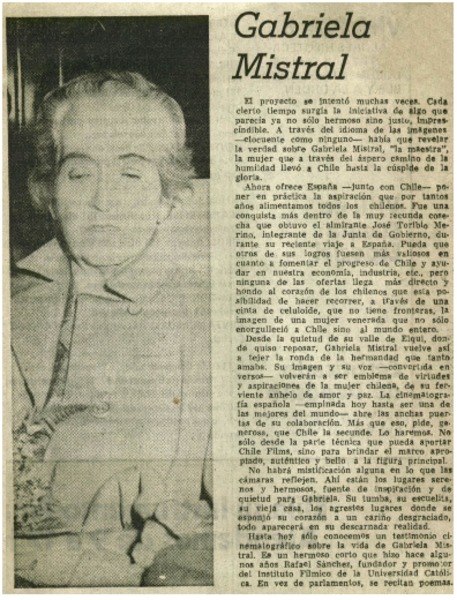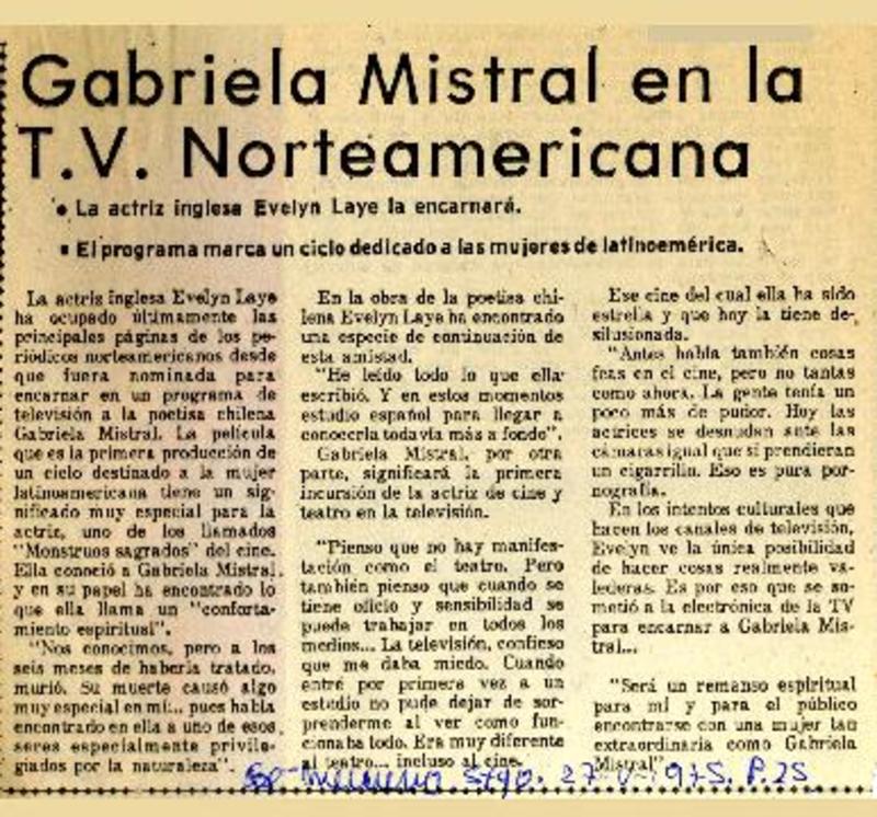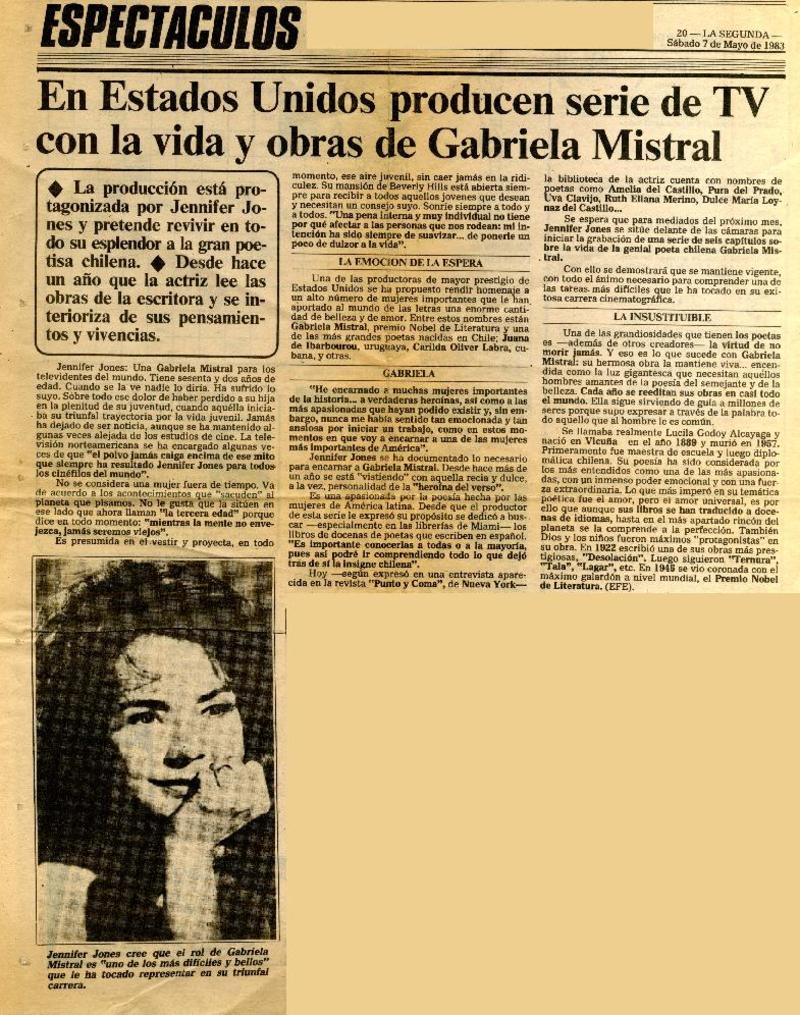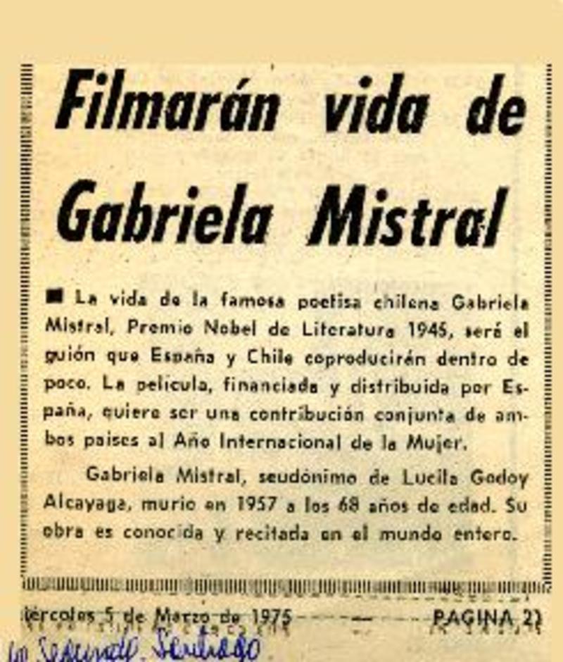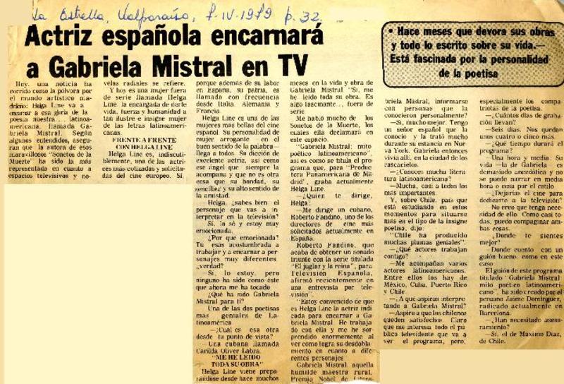 Actriz española encarnará a Gabriela Mistral en TV [artículo]