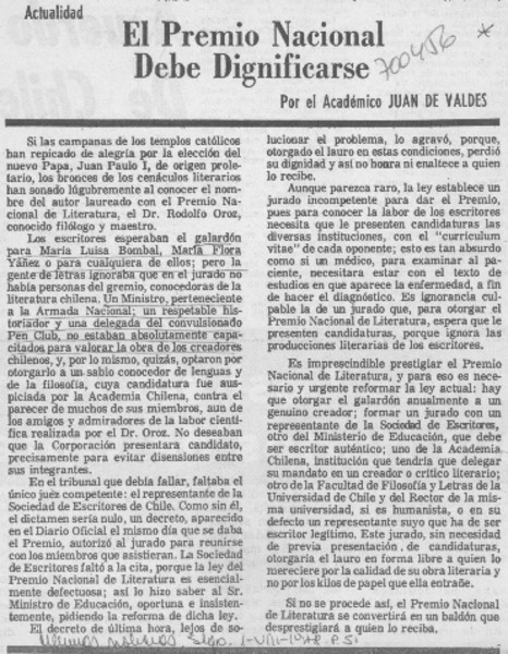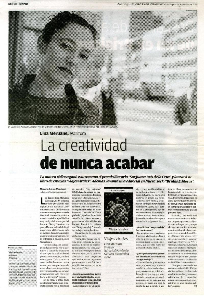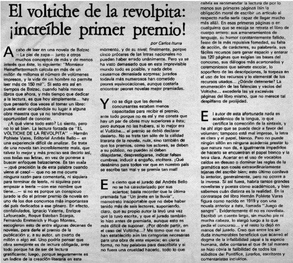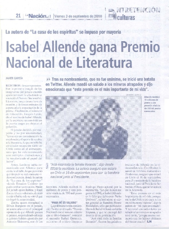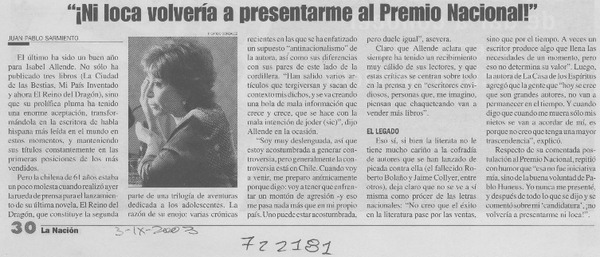 Ni loca volvería a presentarme al Premio Nacional!" [artículo] Juan Pablo Sarmiento.
