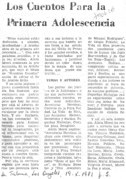 Narraciones juveniles [artículo] Raúl Silva Castro.