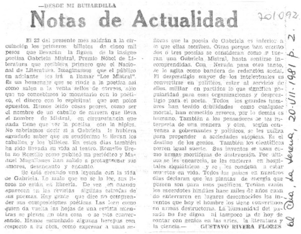 Notas de actualidad [artículo] Gustavo Rivera Flores.