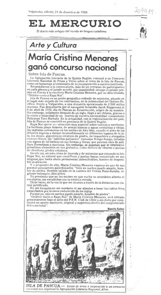 Noticias de Rapa-Nui [artículo] Antonio Cárdenas Tabies.