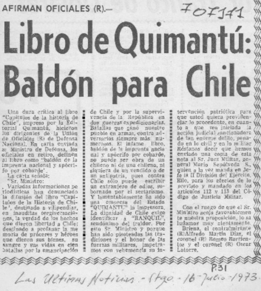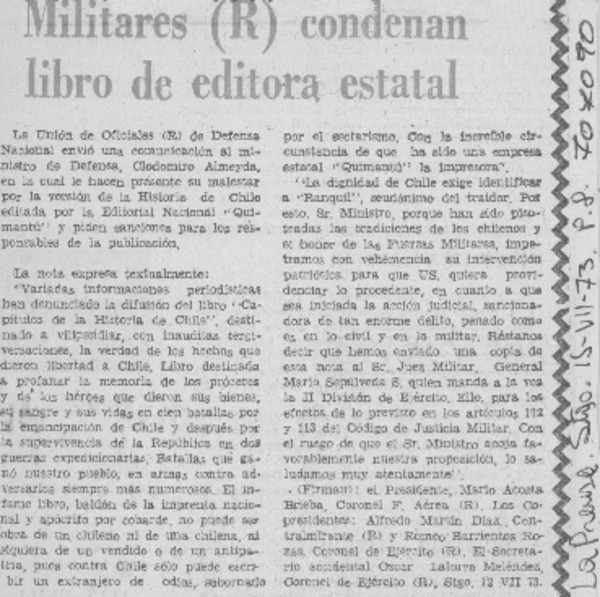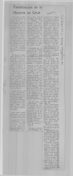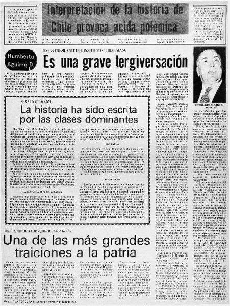 Academia de la historia protesta por ultraje UP a héroes de la patria [artículo] Eugenio Pereira Salas <y> Luis Valencia Avaria.