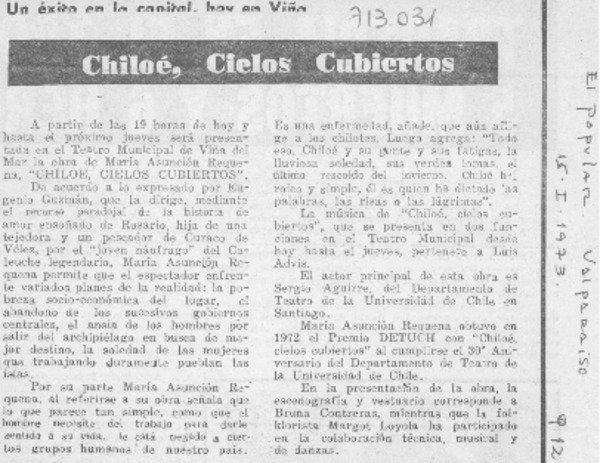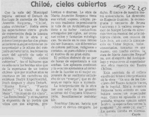 A beneficio irá "Chiloé, cielos cubiertos". [artículo]