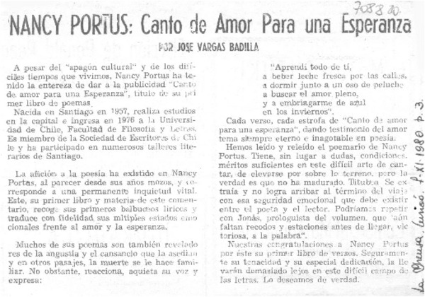 Nancy Portus: canto de amor para una esperanza [artículo] José Vargas Badilla.