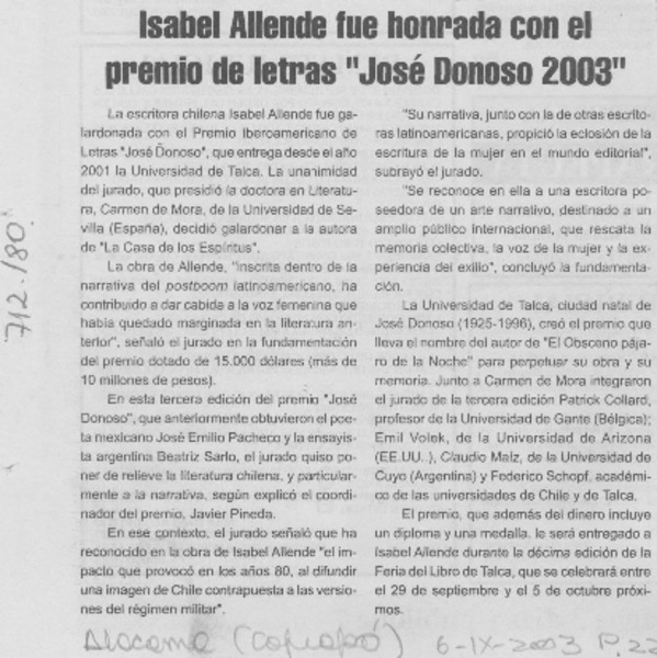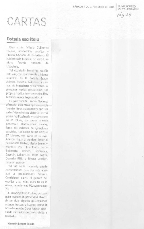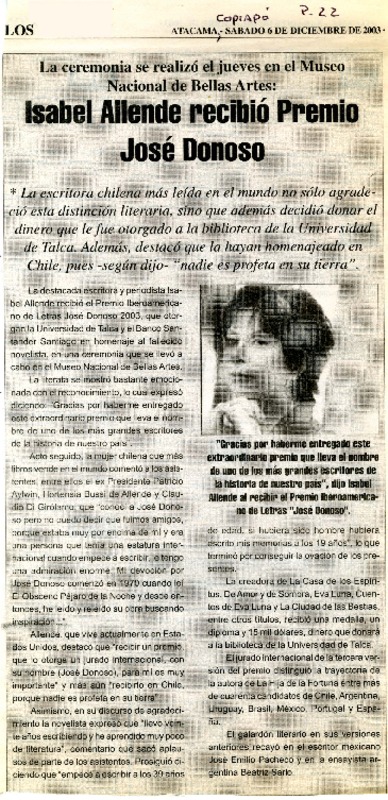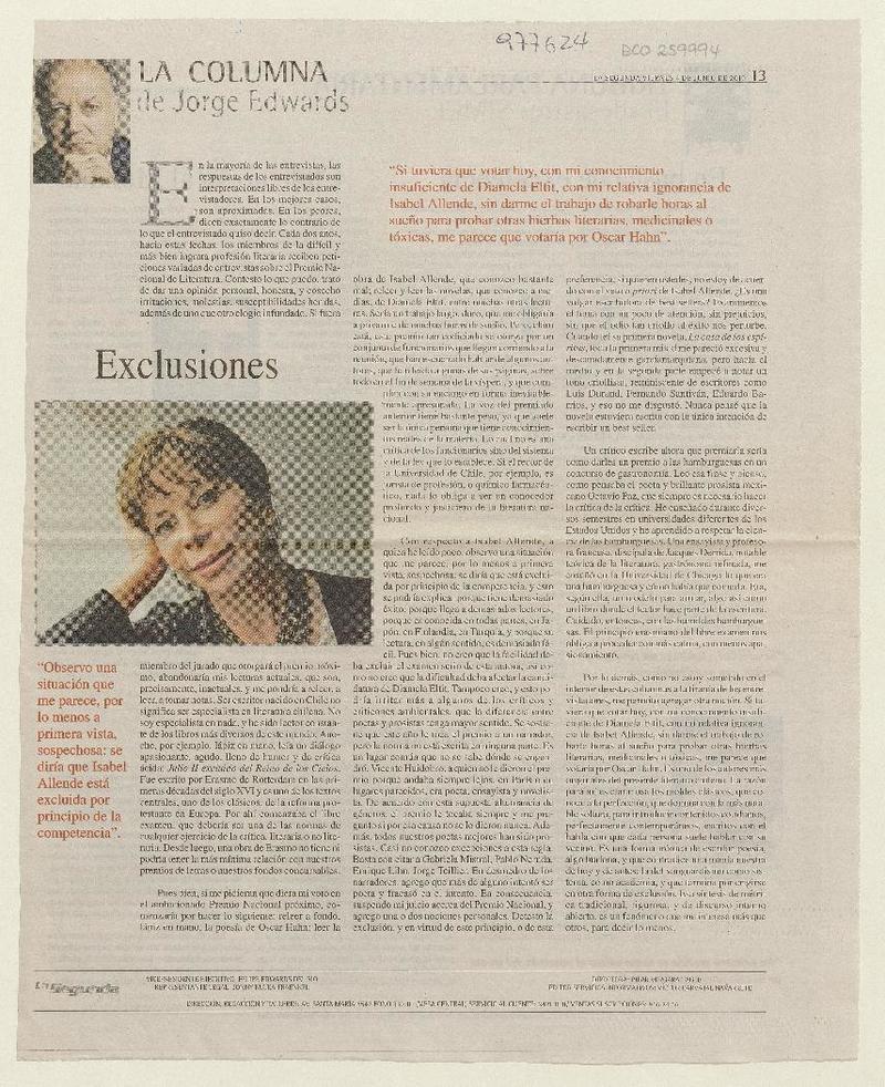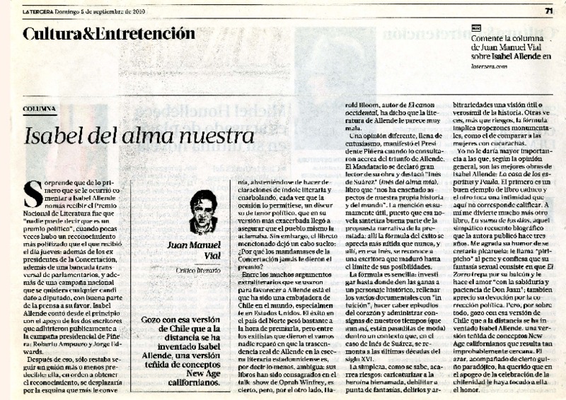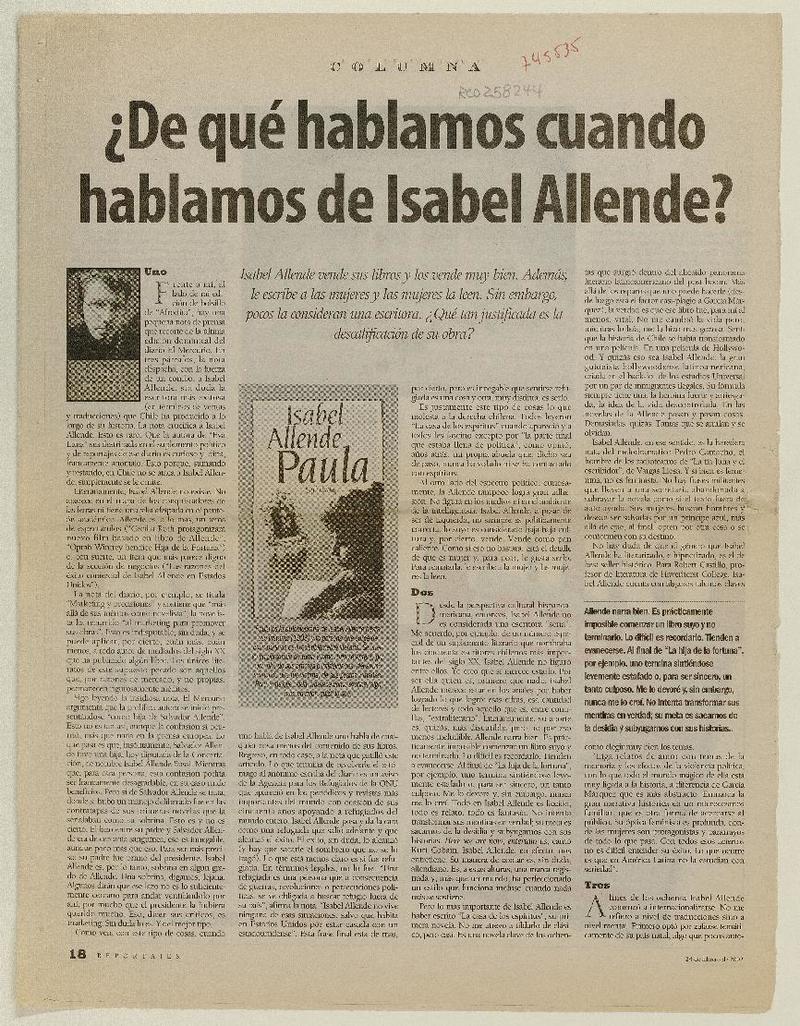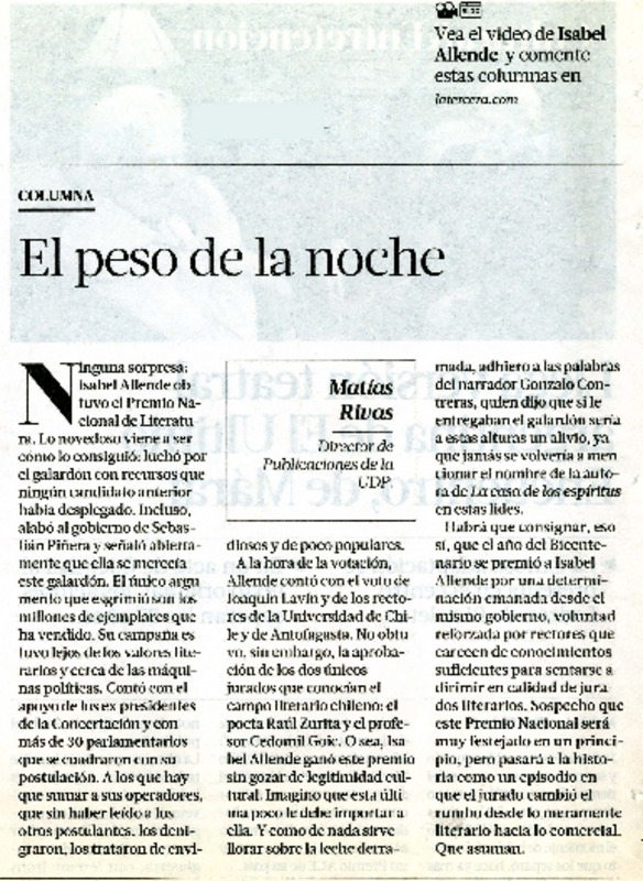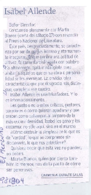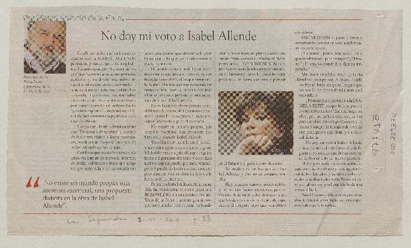 No doy mi voto por Isabel Allende [artículo] Marco Antonio de la Parra.
