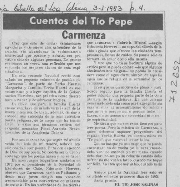 Noche buena en mi tierra" poemario de suave encanto. [artículo]