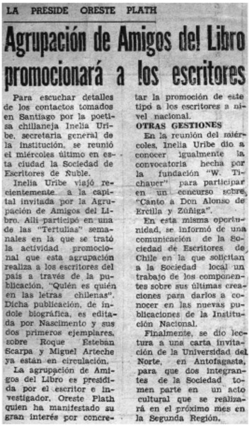 Agrupación de amigos del libro promocionará a los escritores. [artículo]