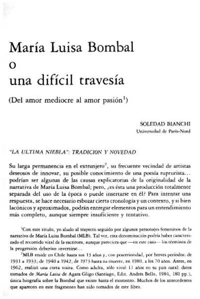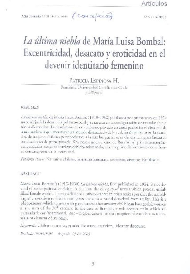 Naturalización del deseo y el saber en los textos de María Luisa Bombal [artículo] Lucía Guerra Cunningham.